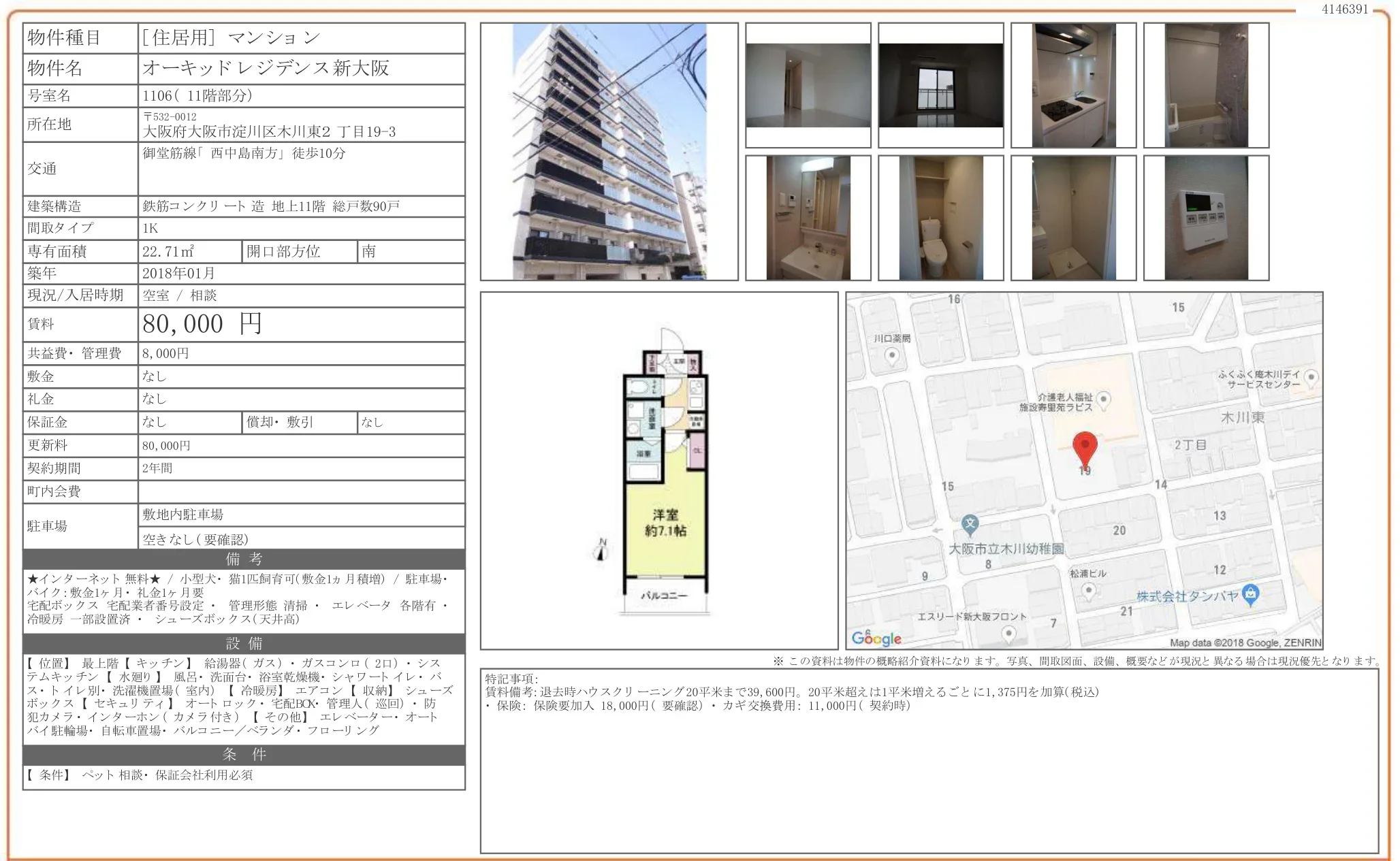 | 物件名 | オーキッドレジデンス新大阪 1106 |