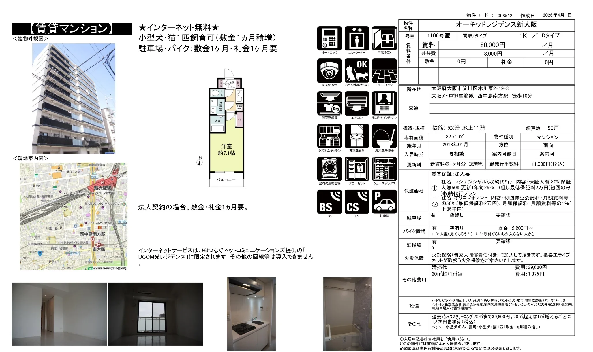 | 物件名 | オーキッドレジデンス新大阪 1106号 |