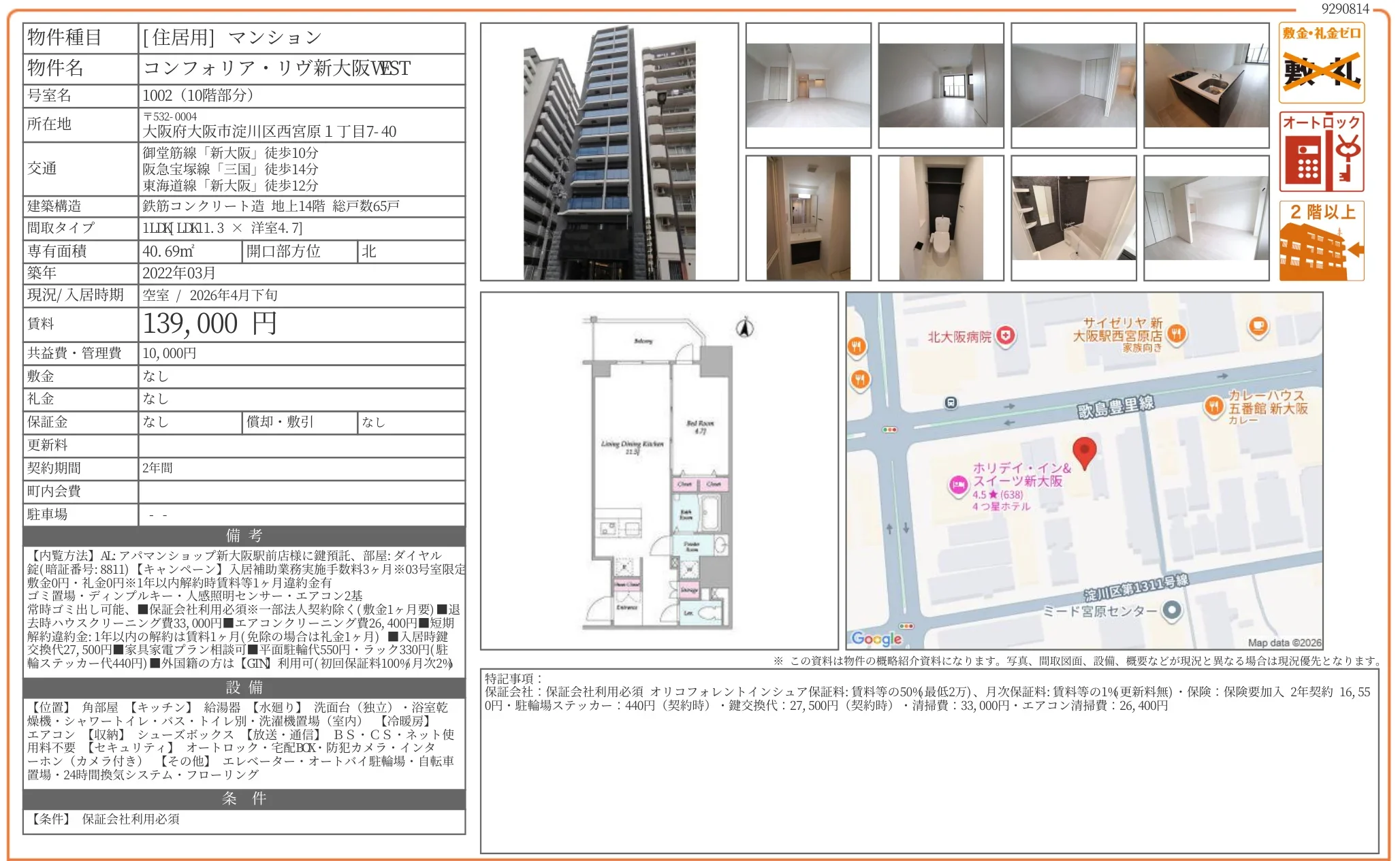 | アクセス | 新大阪 (徒歩10分) 三国 (徒歩14分) 新大阪 (徒歩12分) |