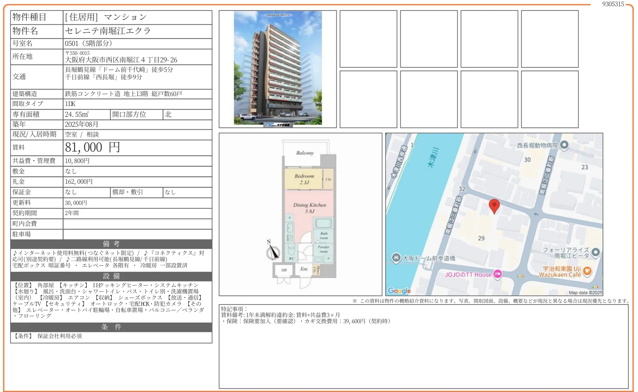 | 物件名 | セレニテ南堀江エクラ 0501 |