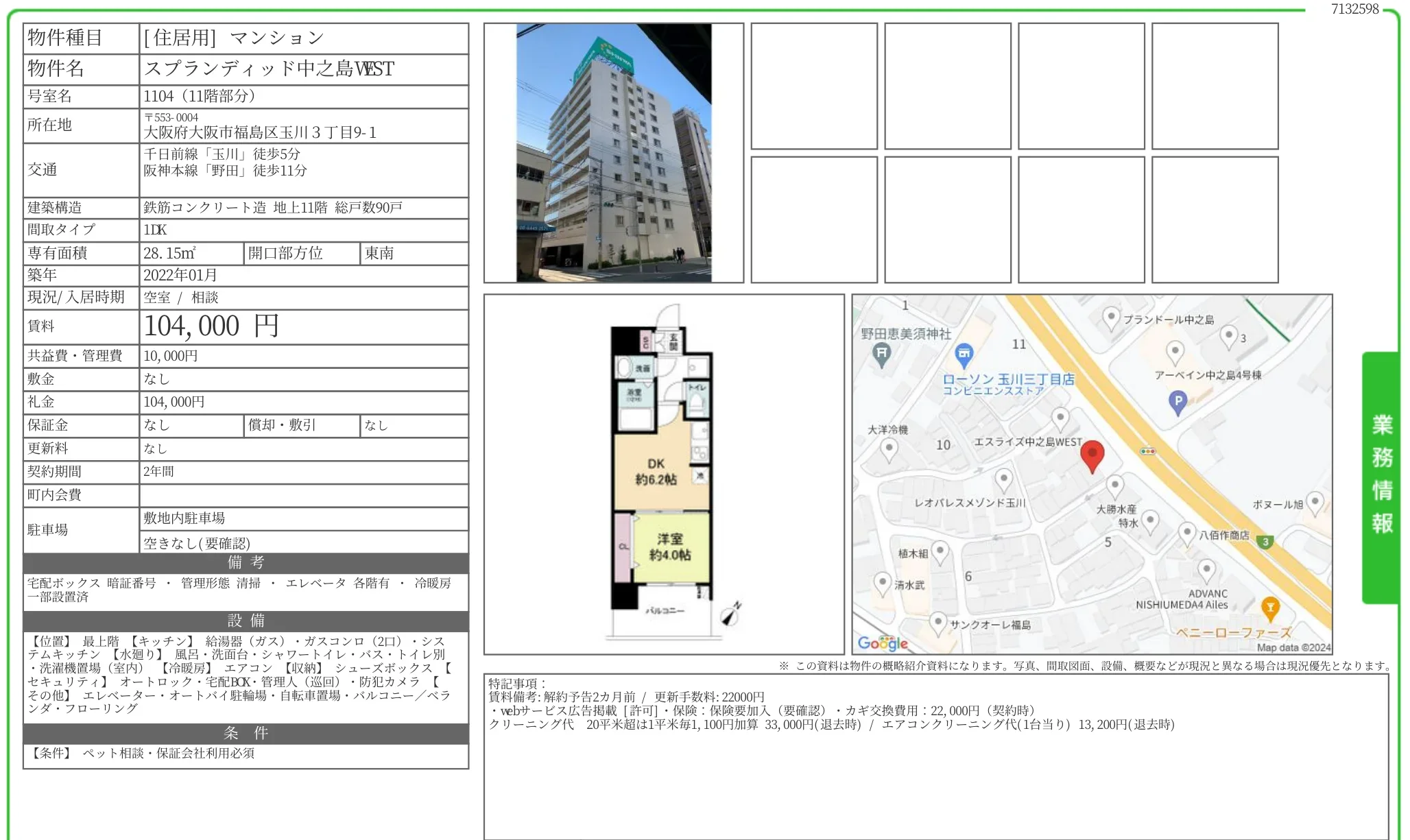 | 部屋番号 | 1104 |