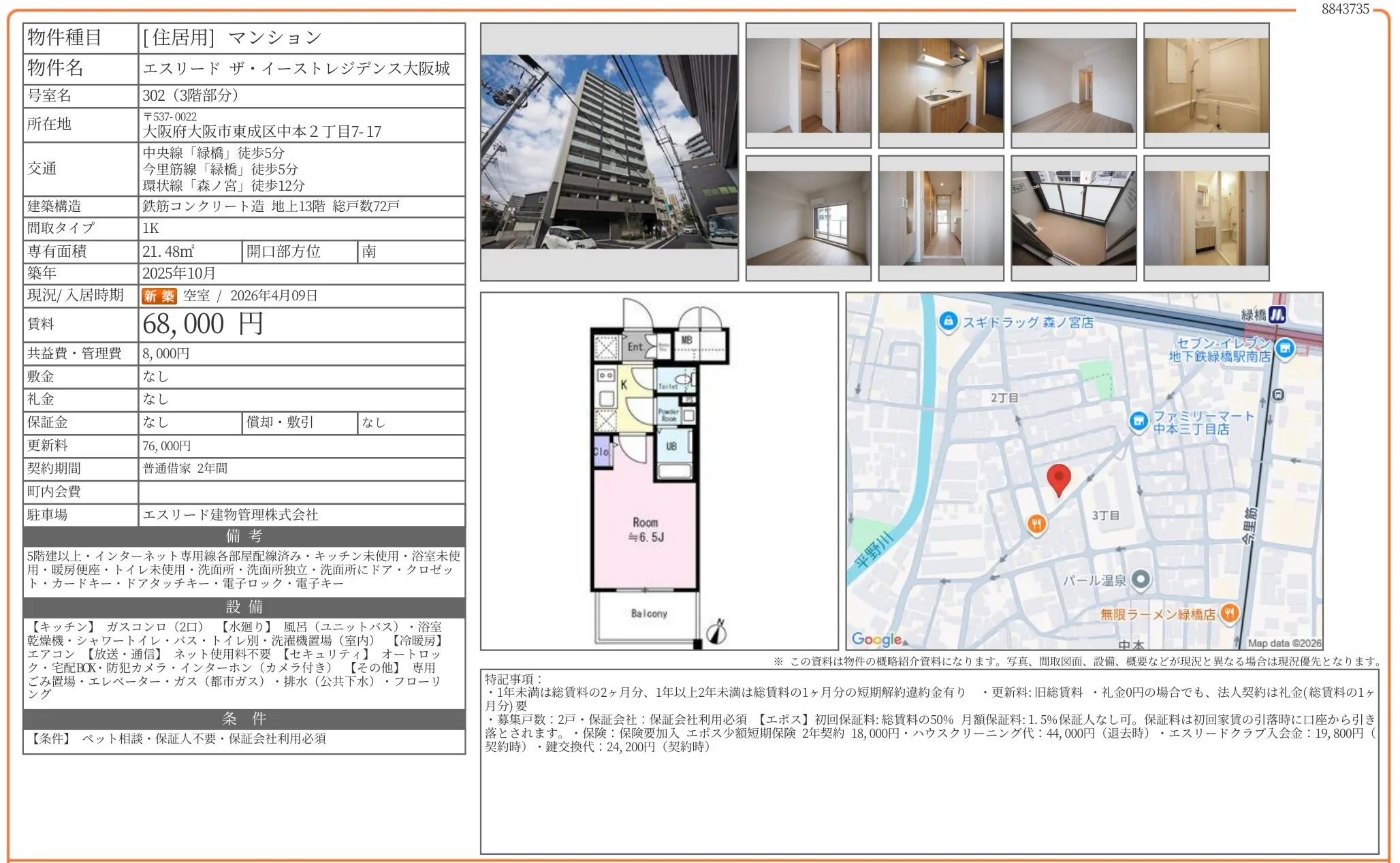 | アクセス | 緑橋 (徒歩5分) 緑橋 (徒歩5分) 森ノ宮 (徒歩12分) |