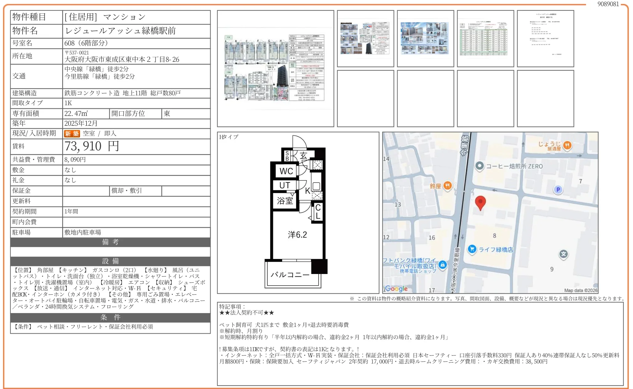 | 物件名 | レジュールアッシュ緑橋駅前 608号 |