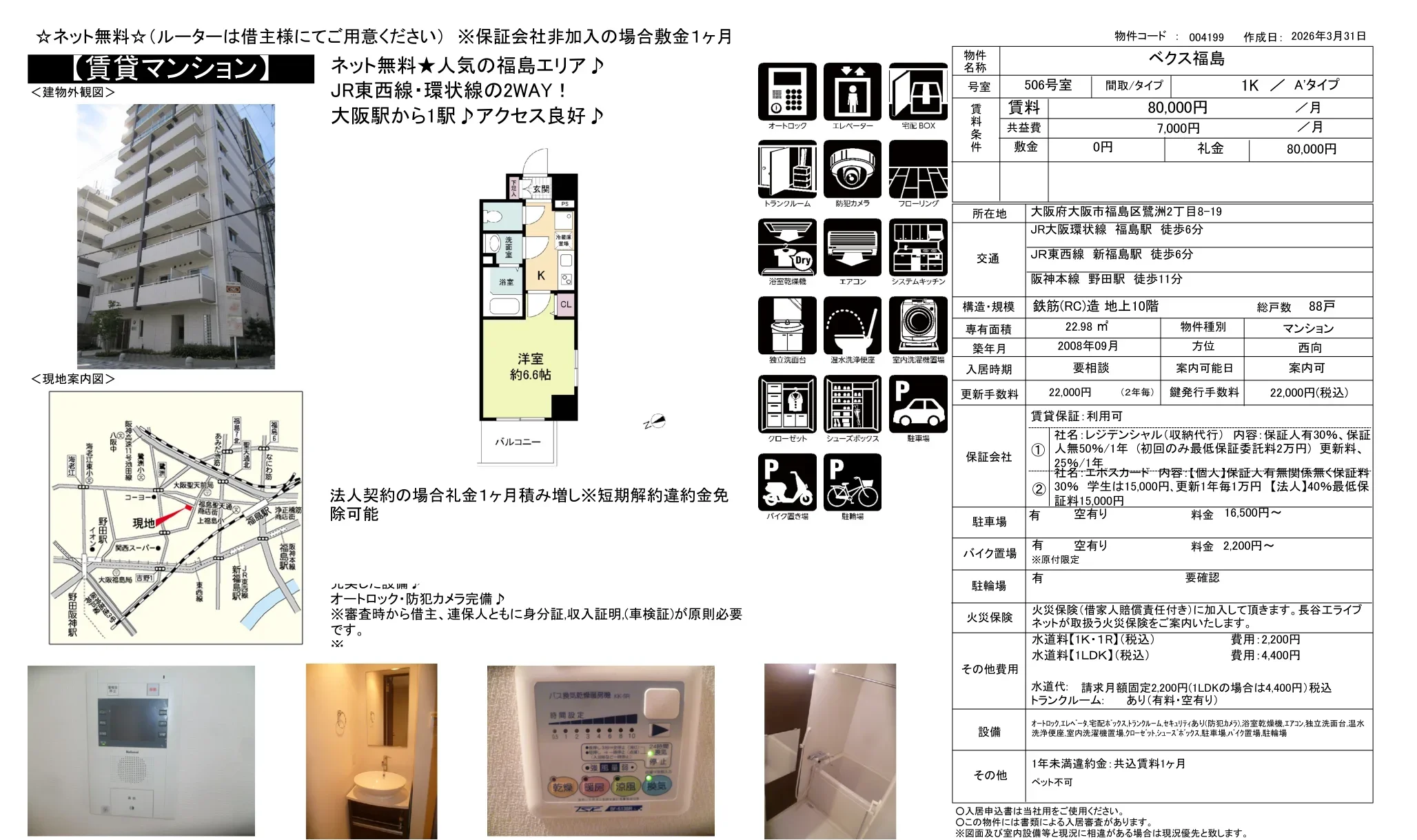 | アクセス | 福島駅 (徒歩6分) 新福島駅 (徒歩6分) 野田駅 (徒歩11分) |