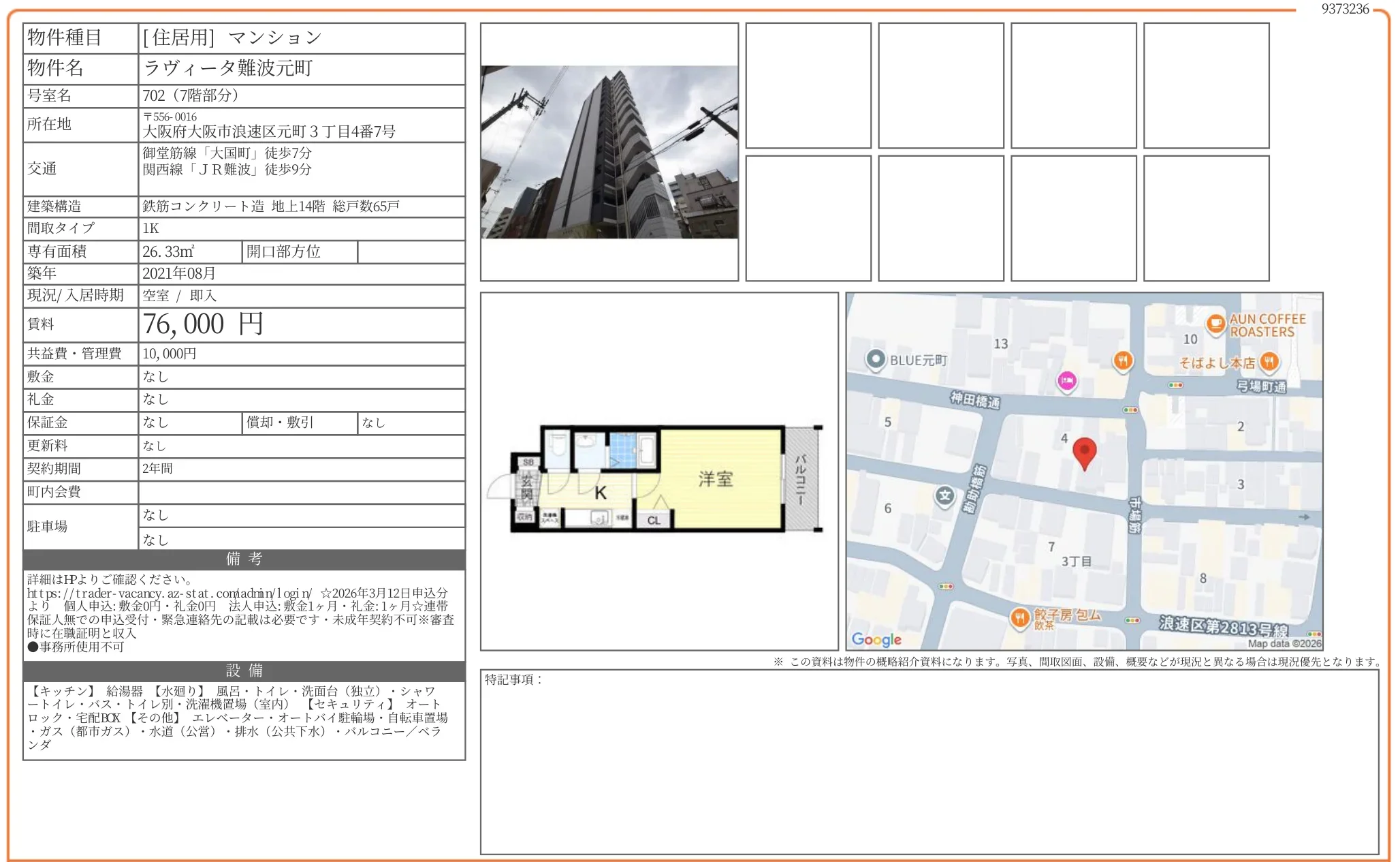 | 物件名 | ラヴィータ難波元町 702 |
