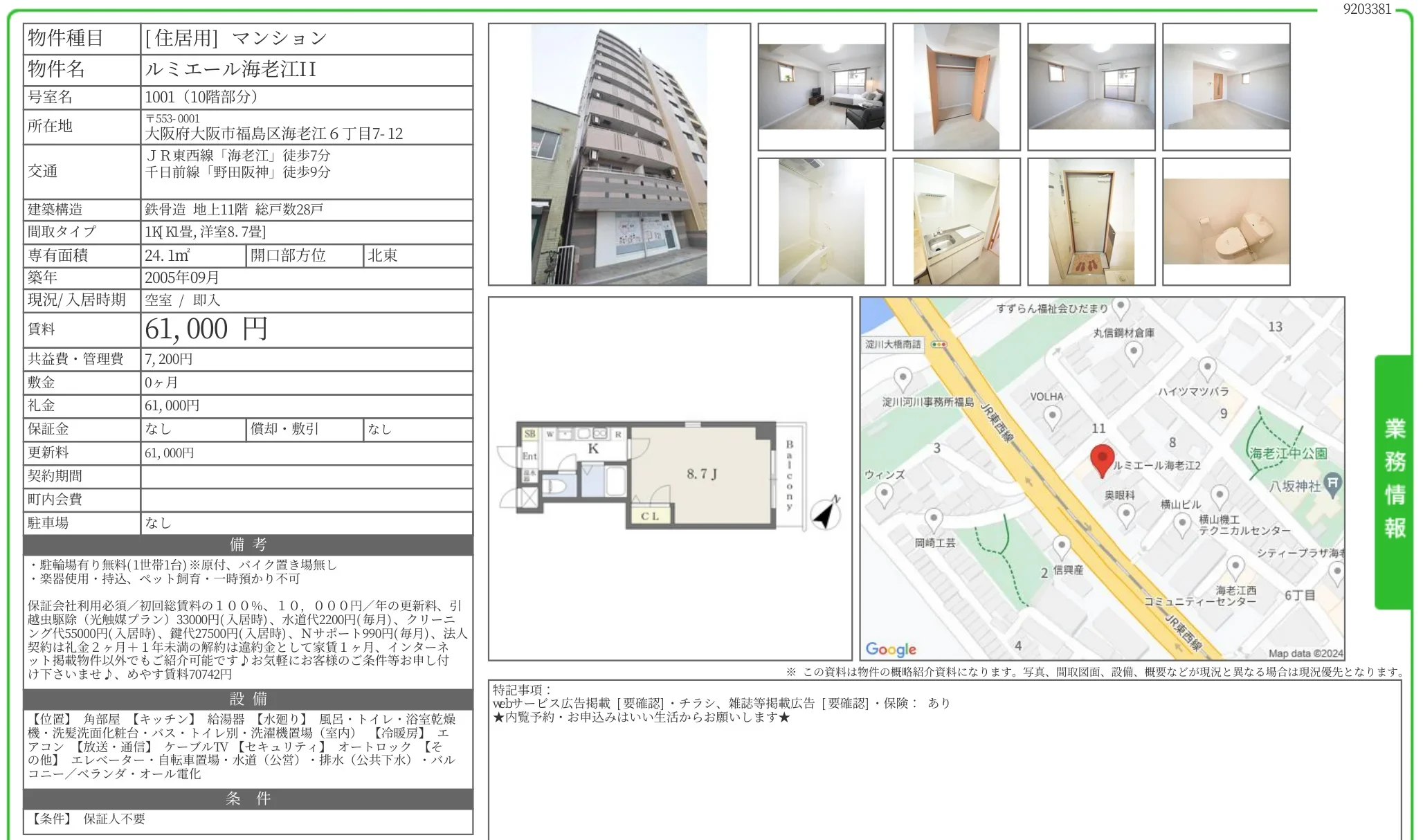| 物件名 | ルミエール海老江II 1001号 |