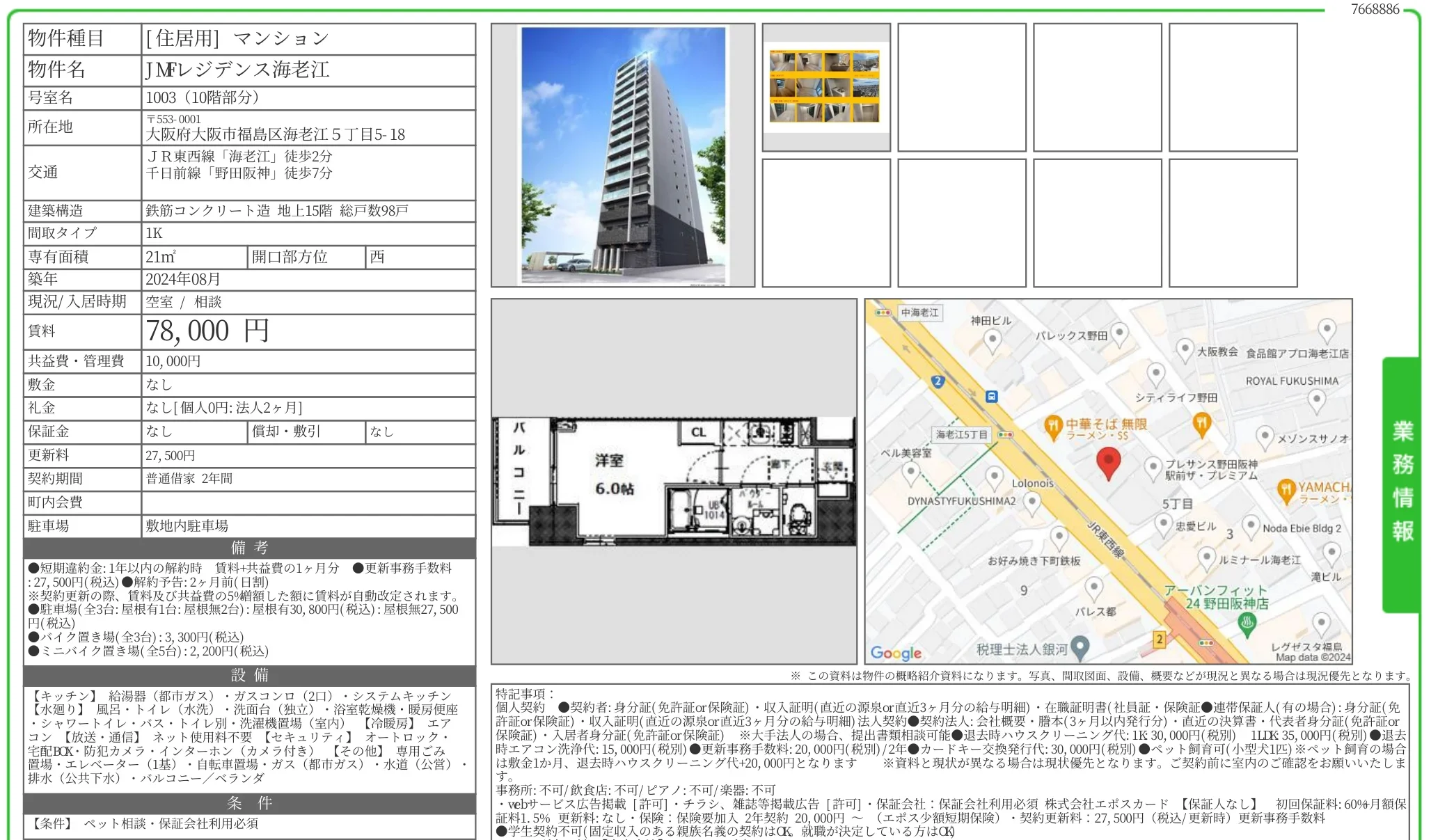 | 物件名 | JMFレジデンス海老江 1003 |