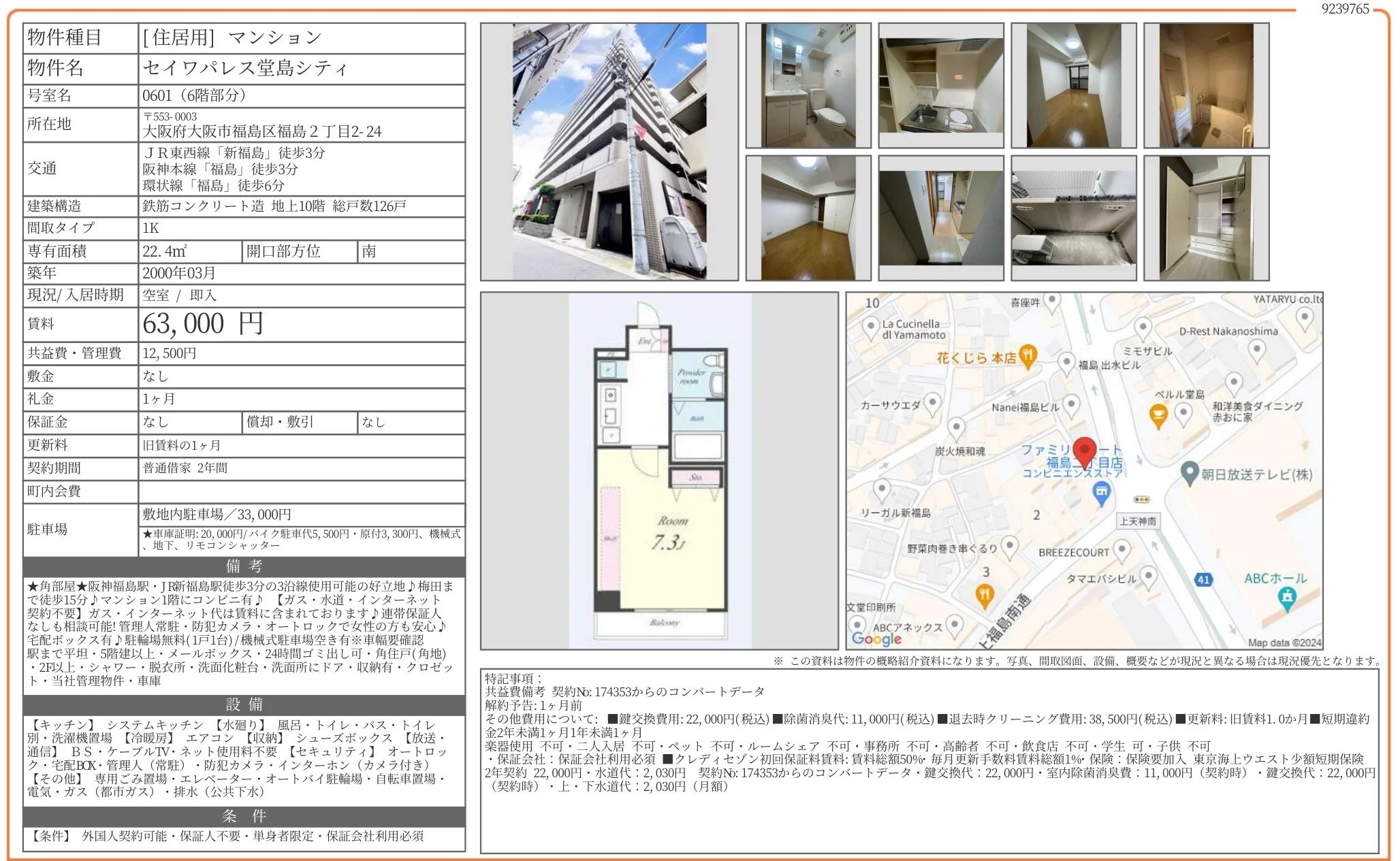 | 物件名 | セイワパレス堂島シティ 0601号 |