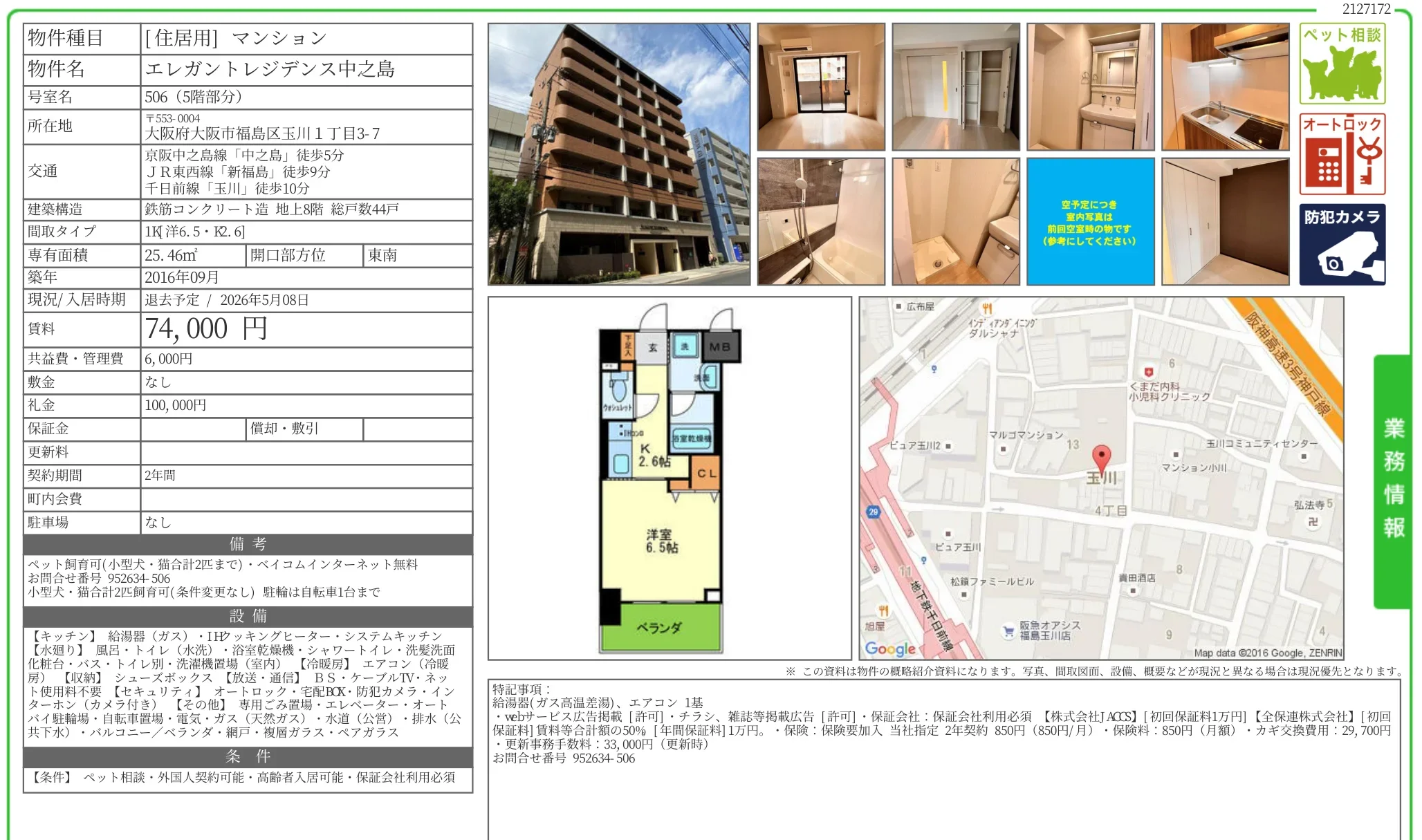 | アクセス | 中之島 (徒歩5分) 新福島 (徒歩9分) 玉川 (徒歩10分) |