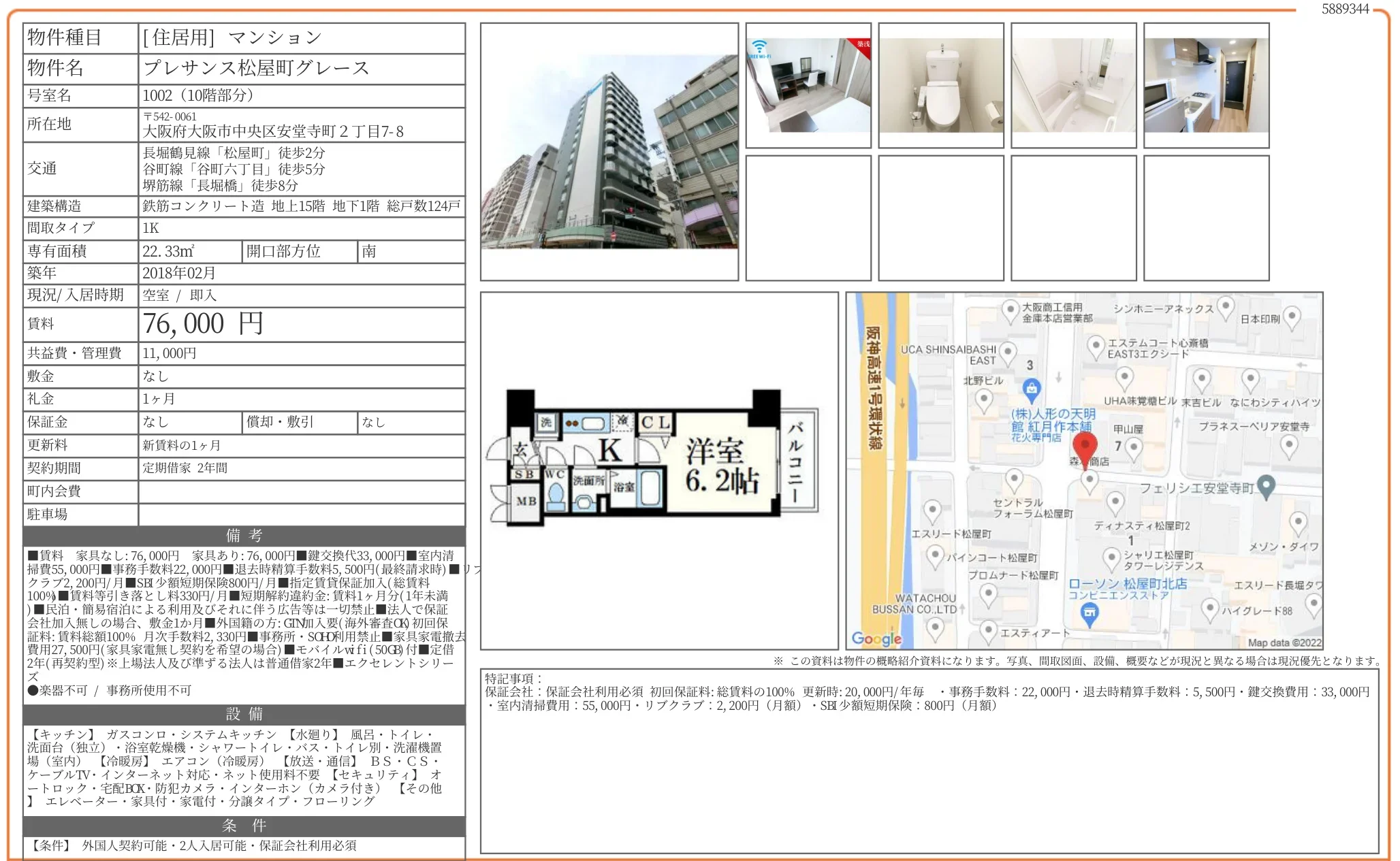 | アクセス | 松屋町 (徒歩2分) 谷町六丁目 (徒歩5分) 長堀橋 (徒歩8分) |