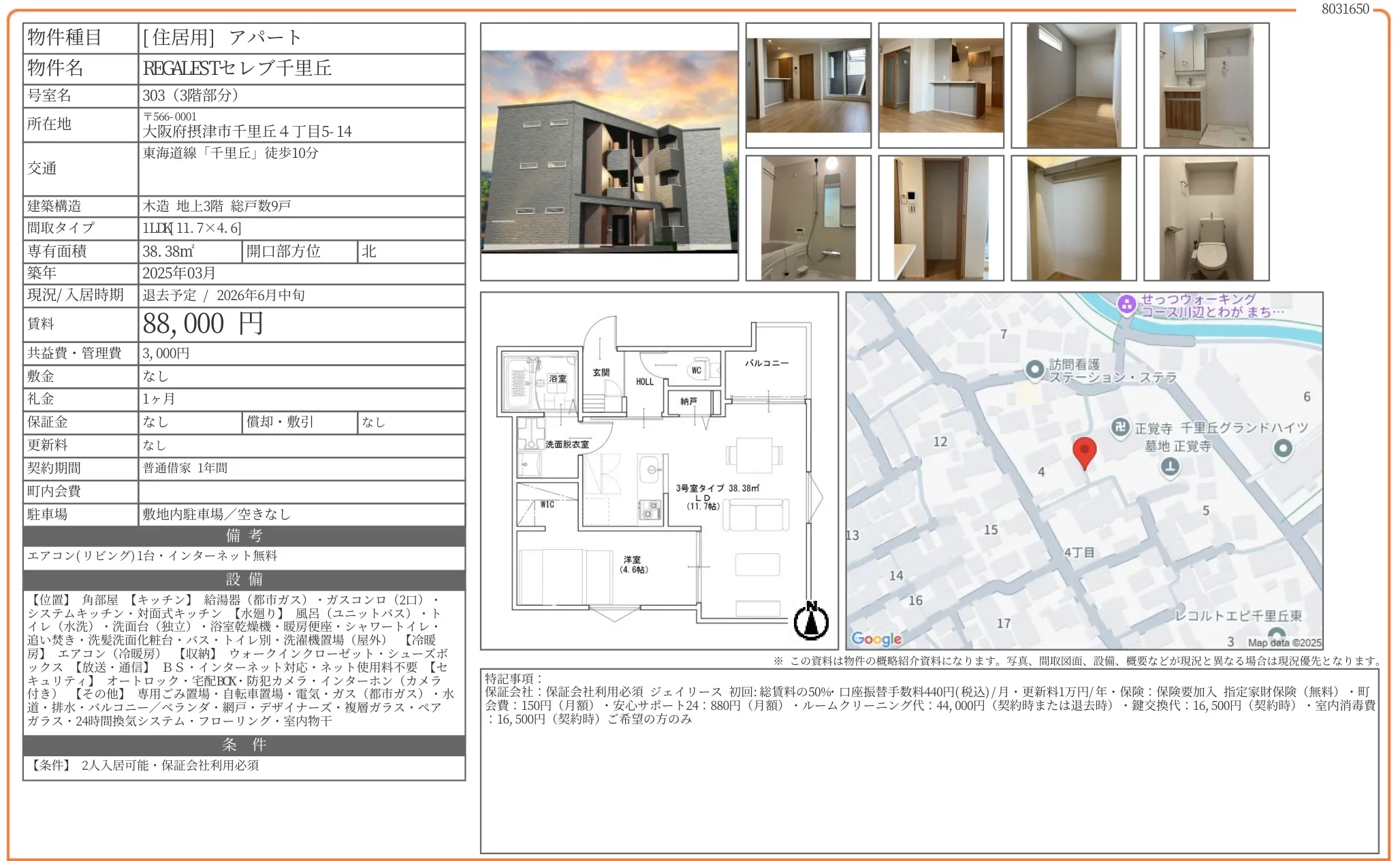 | 物件名 | REGALESTセレブ千里丘 303号 |