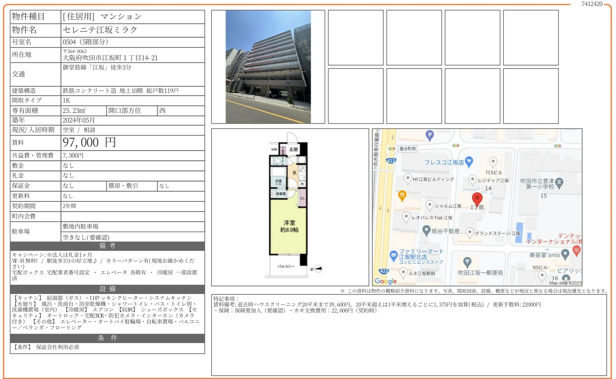 | 物件名 | セレニテ江坂ミラク 0504号 |