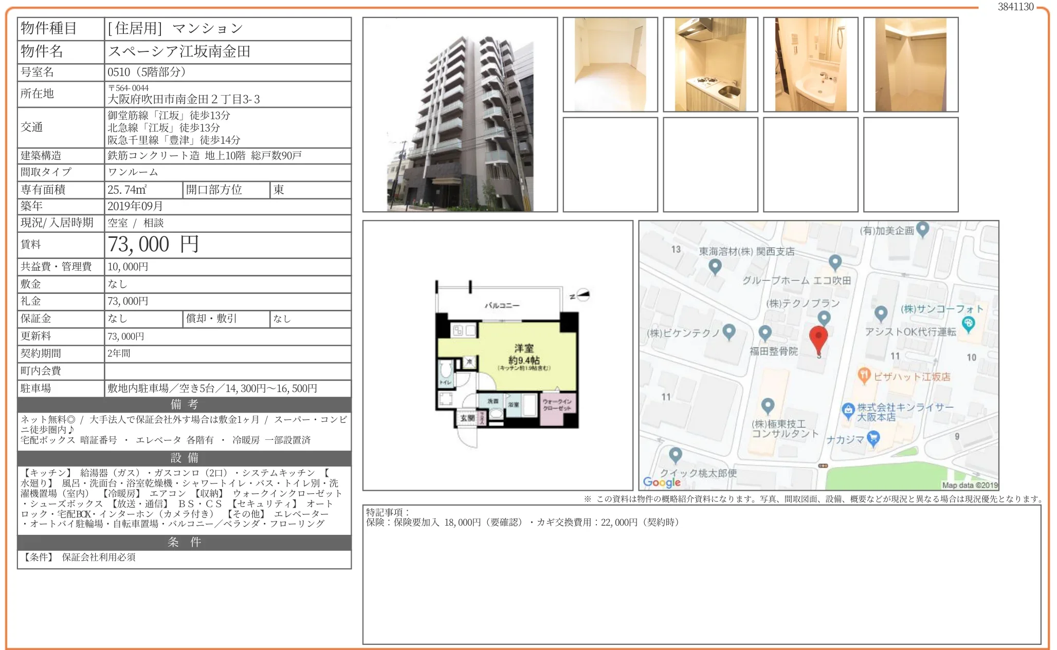 | 礼金 | 73000 |