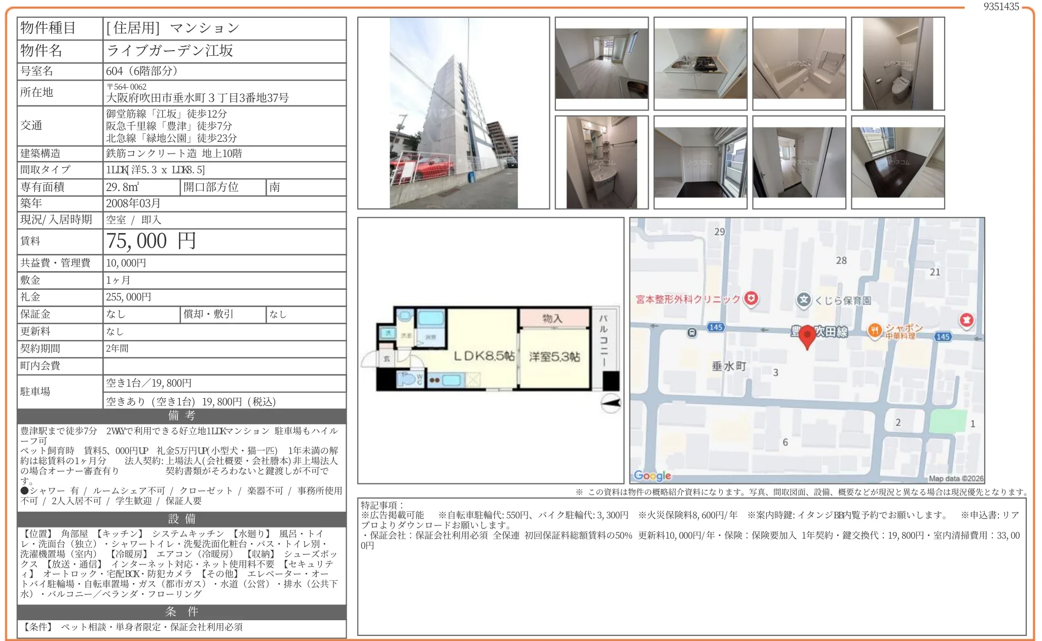 | アクセス | 江坂 (徒歩12分) 豊津 (徒歩7分) 緑地公園 (徒歩23分) |