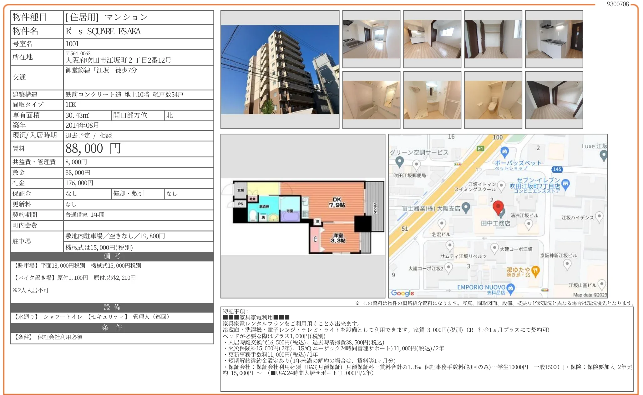 | 物件名 | K's SQUARE ESAKA 1001 |