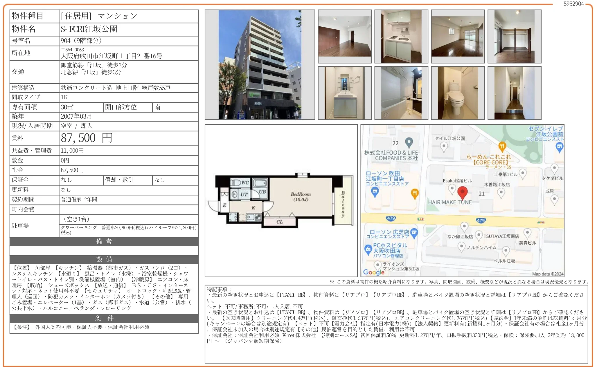 | 物件名 | S-FORT江坂公園 904 |