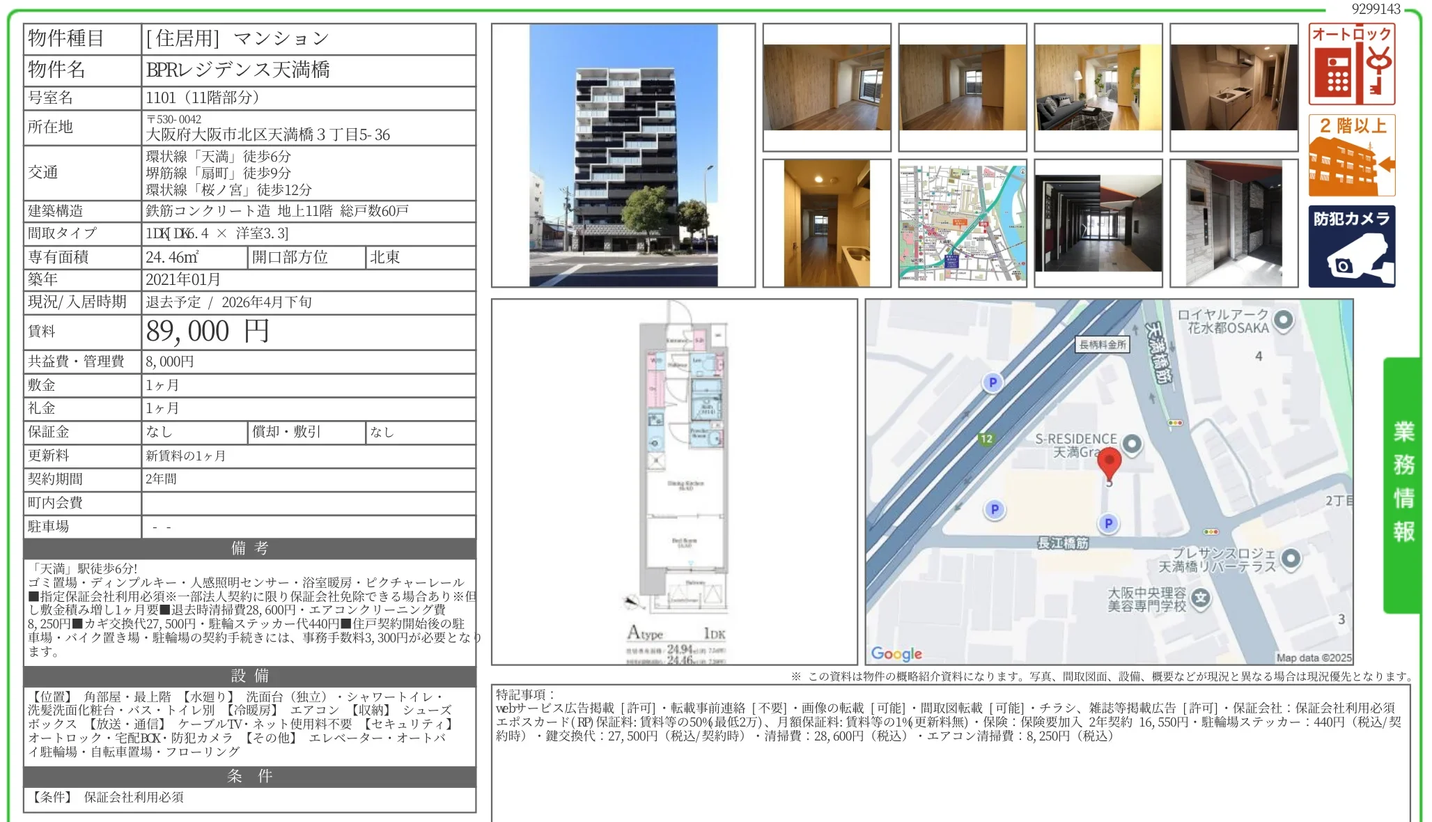 | 物件名 | BPRレジデンス天満橋 1101 |
