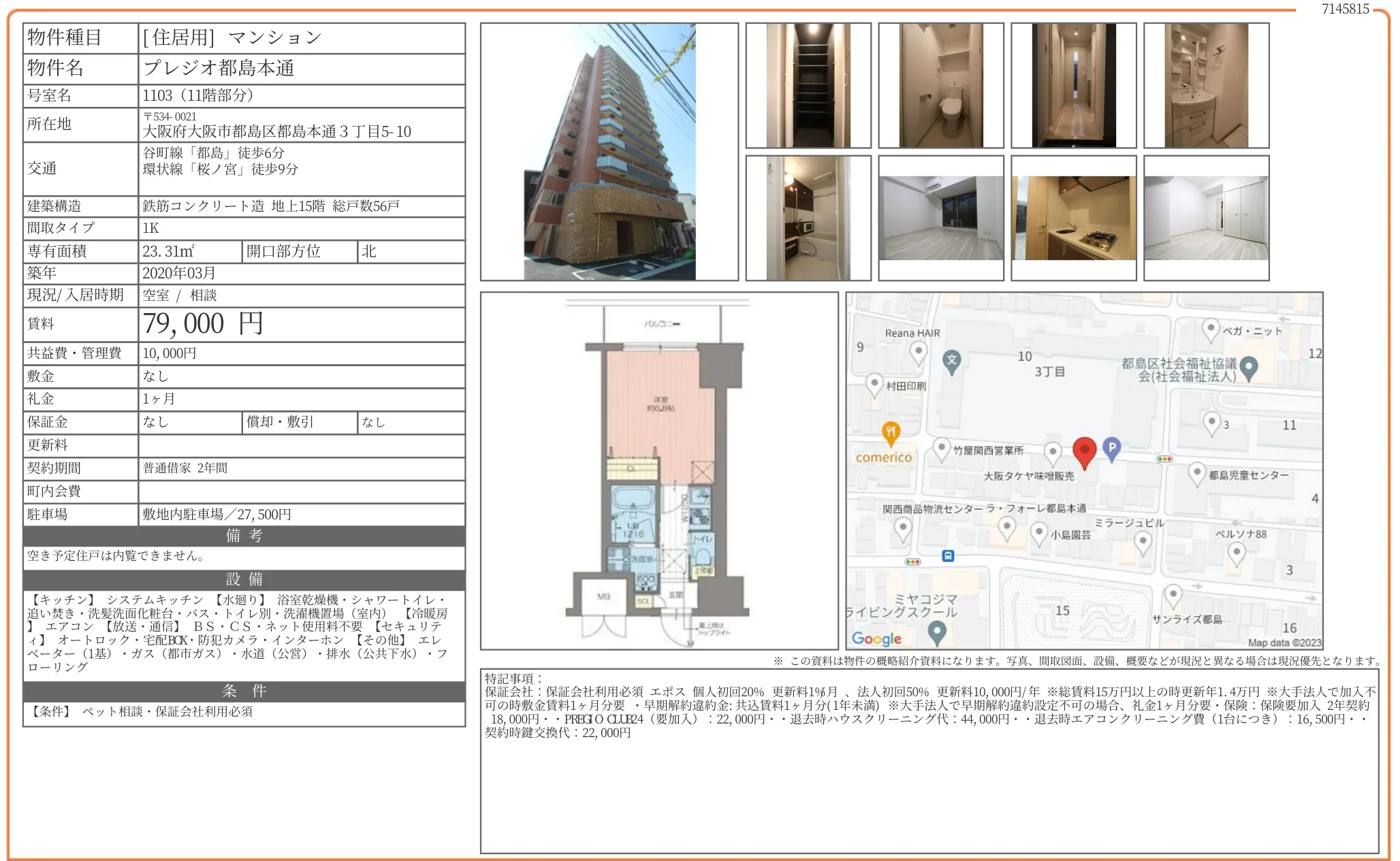 | 物件名 | プレジオ都島本通 1103 |