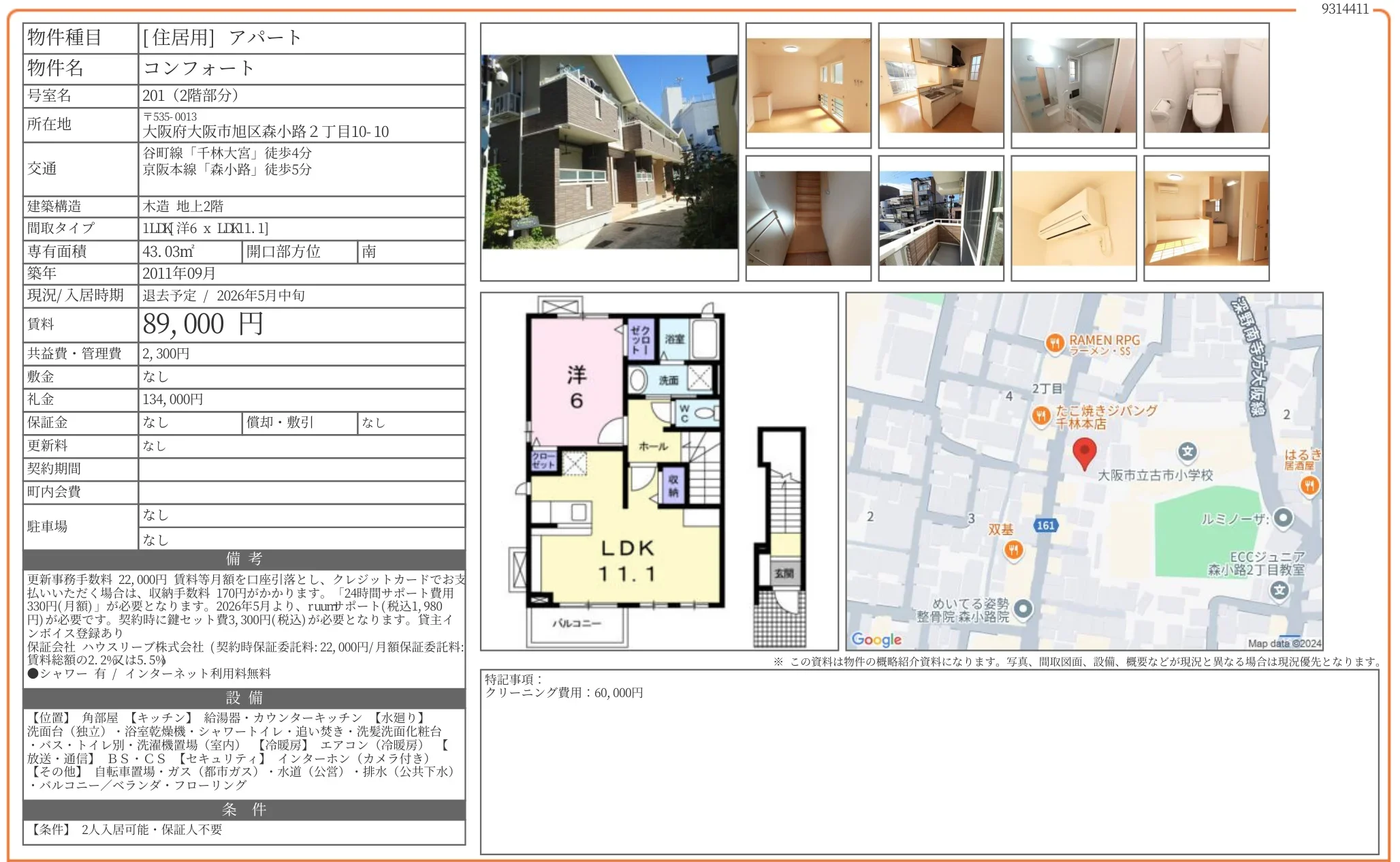 | 築年月 | 2011年9月 |