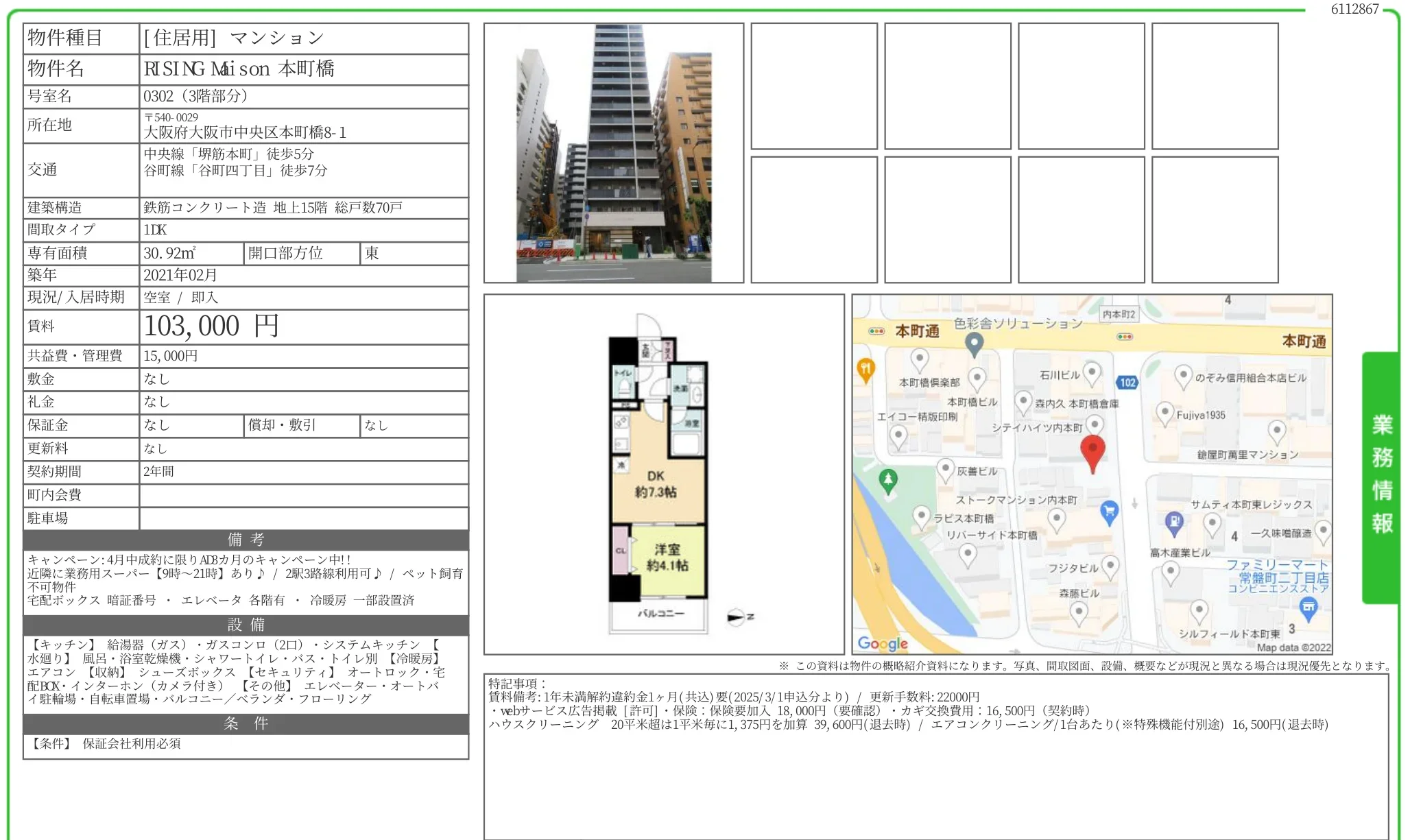 | 物件名 | RISING Mi son 本町橋 0302号 |