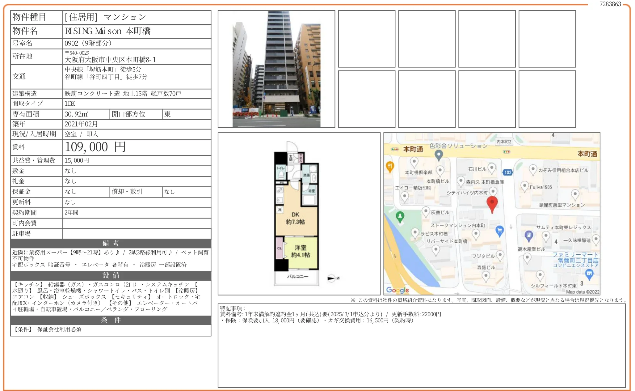 | 物件名 | RISING Mi son 本町橋 0902 |