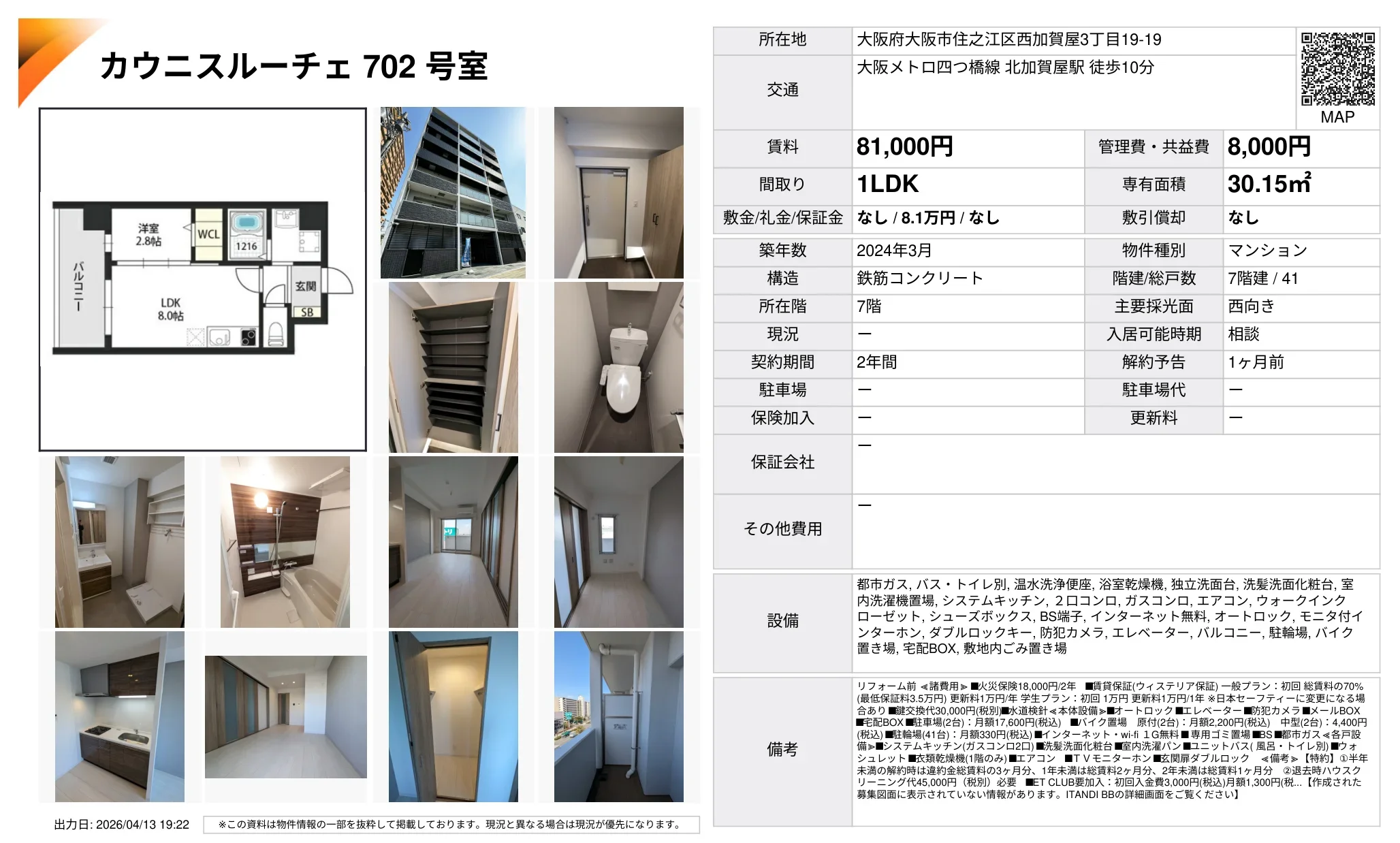 | アクセス | 北加賀屋駅 (徒歩10分) |