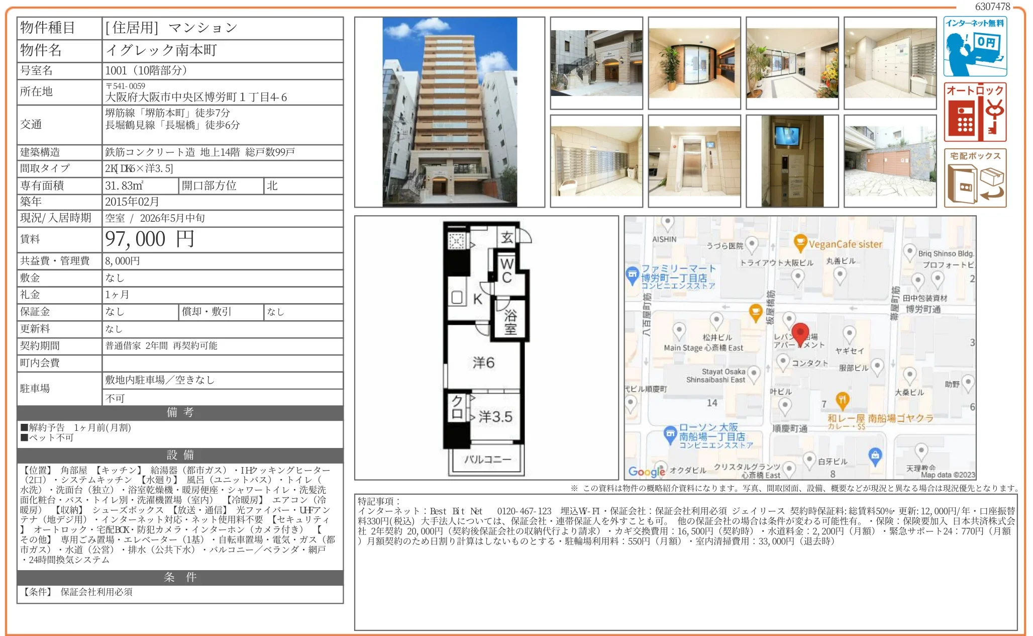 | アクセス | 堺筋本町 (徒歩7分) 長堀橋 (徒歩6分) |