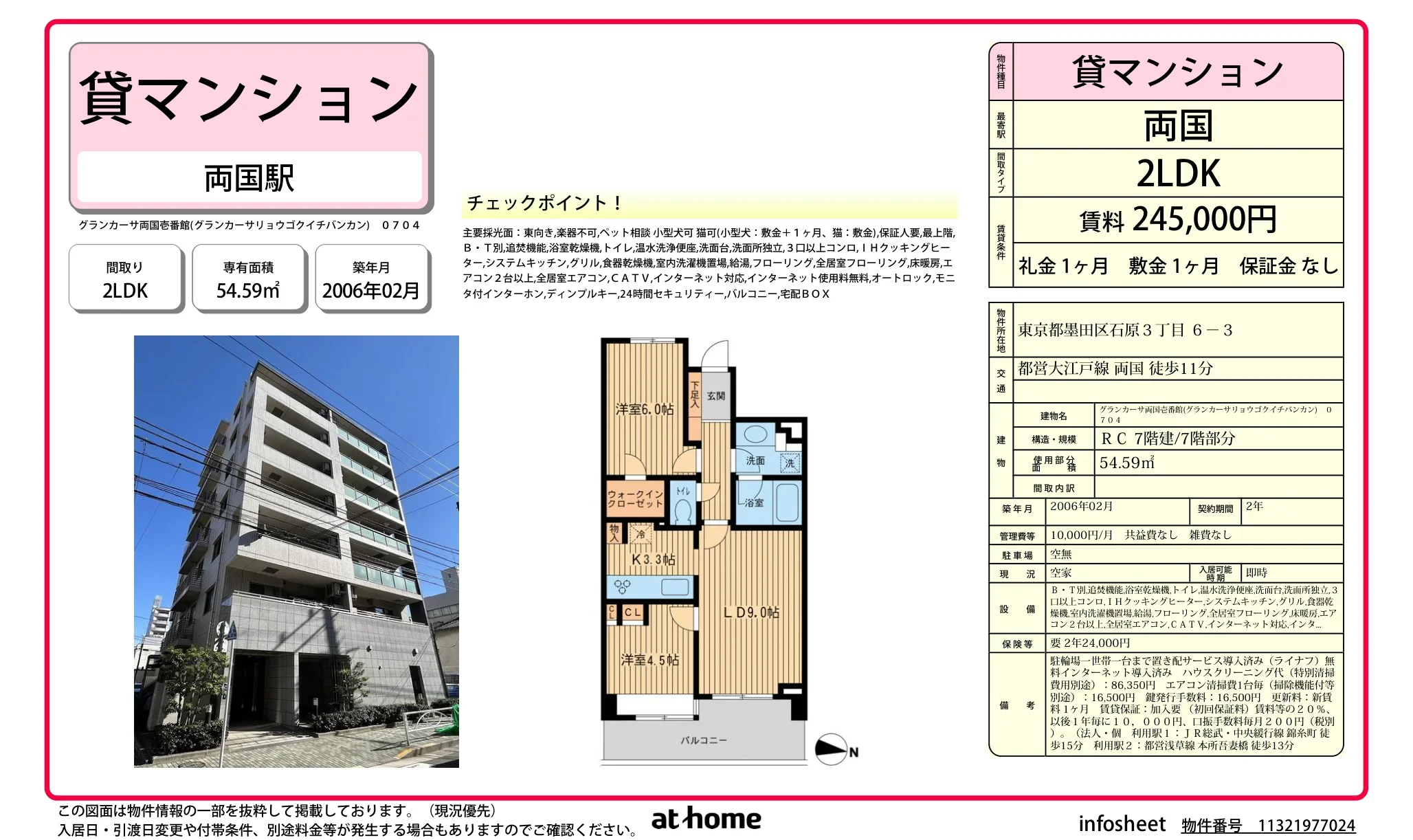 | アクセス | 両国 (徒歩11分) 錦糸町 (徒歩15分) 本所吾妻橋 (徒歩13分) |