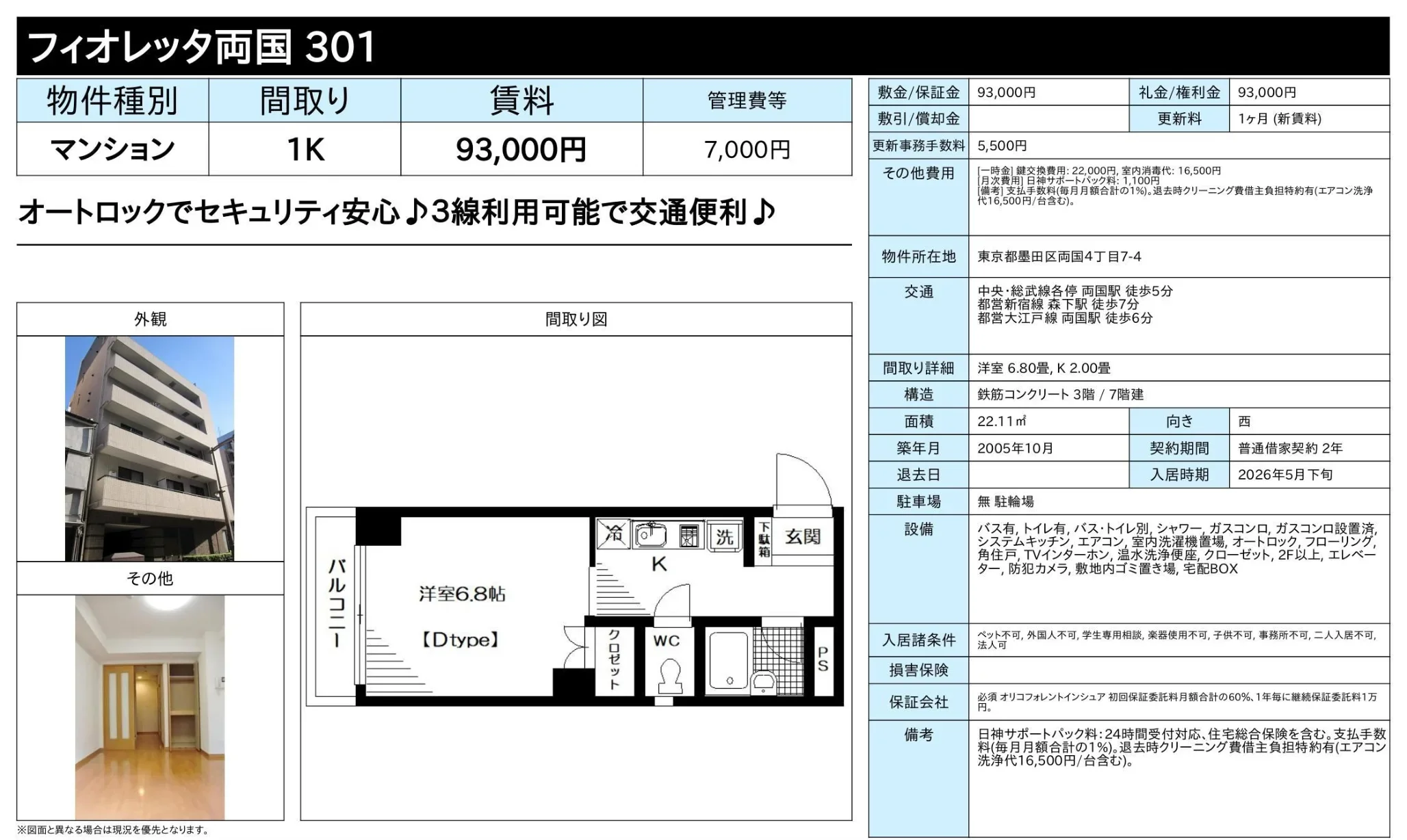 | アクセス | 両国駅 (徒歩5分) 森下駅 (徒歩7分) 両国駅 (徒歩6分) |