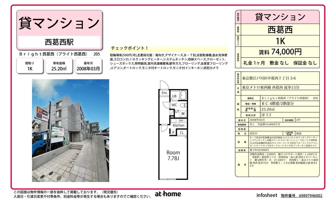 | アクセス | 西葛西 (徒歩15分) 葛西 (徒歩16分) 葛西臨海公園 (徒歩22分) |