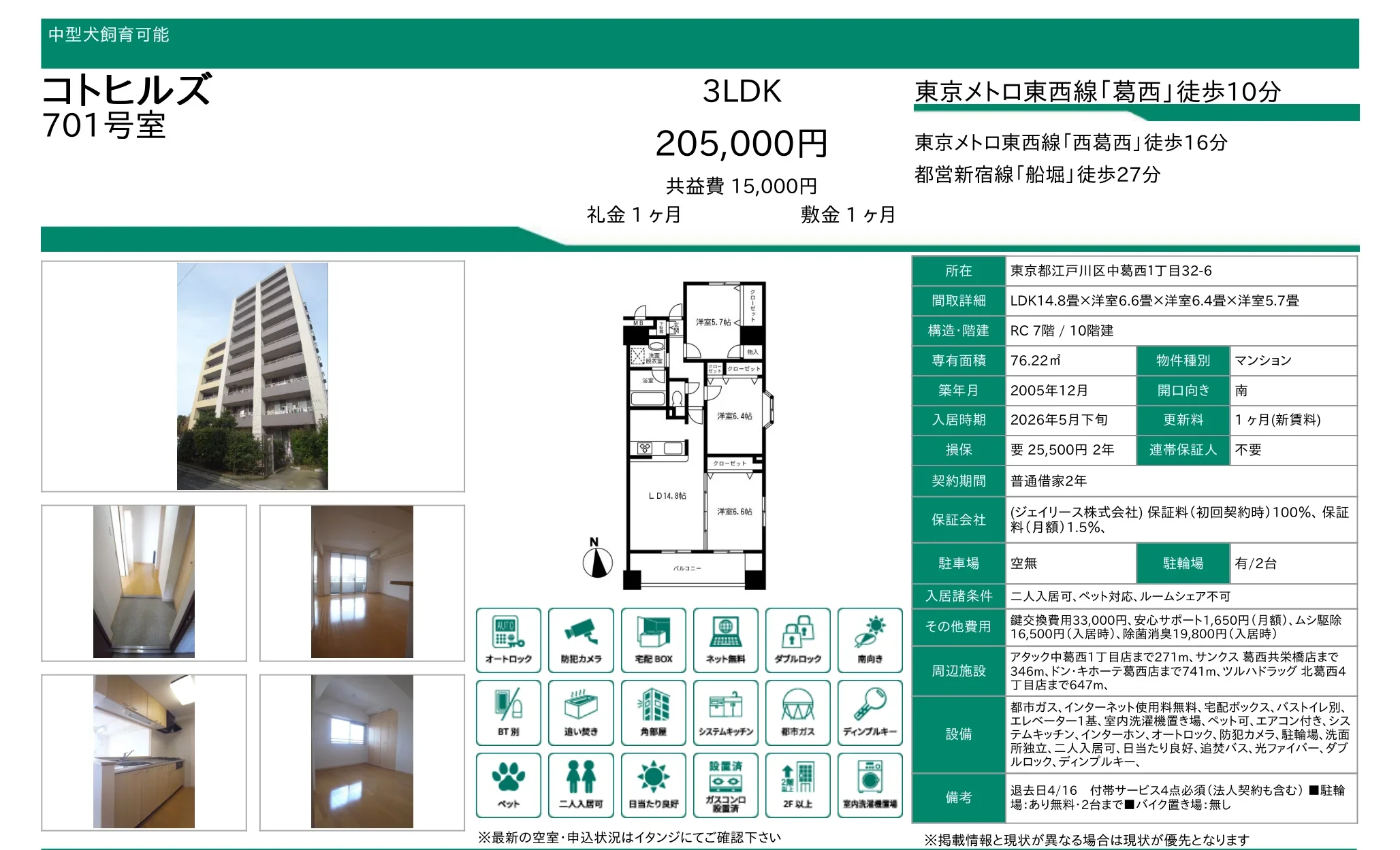 | アクセス | 葛西 (徒歩10分) 西葛西 (徒歩16分) 船堀 (徒歩27分) |