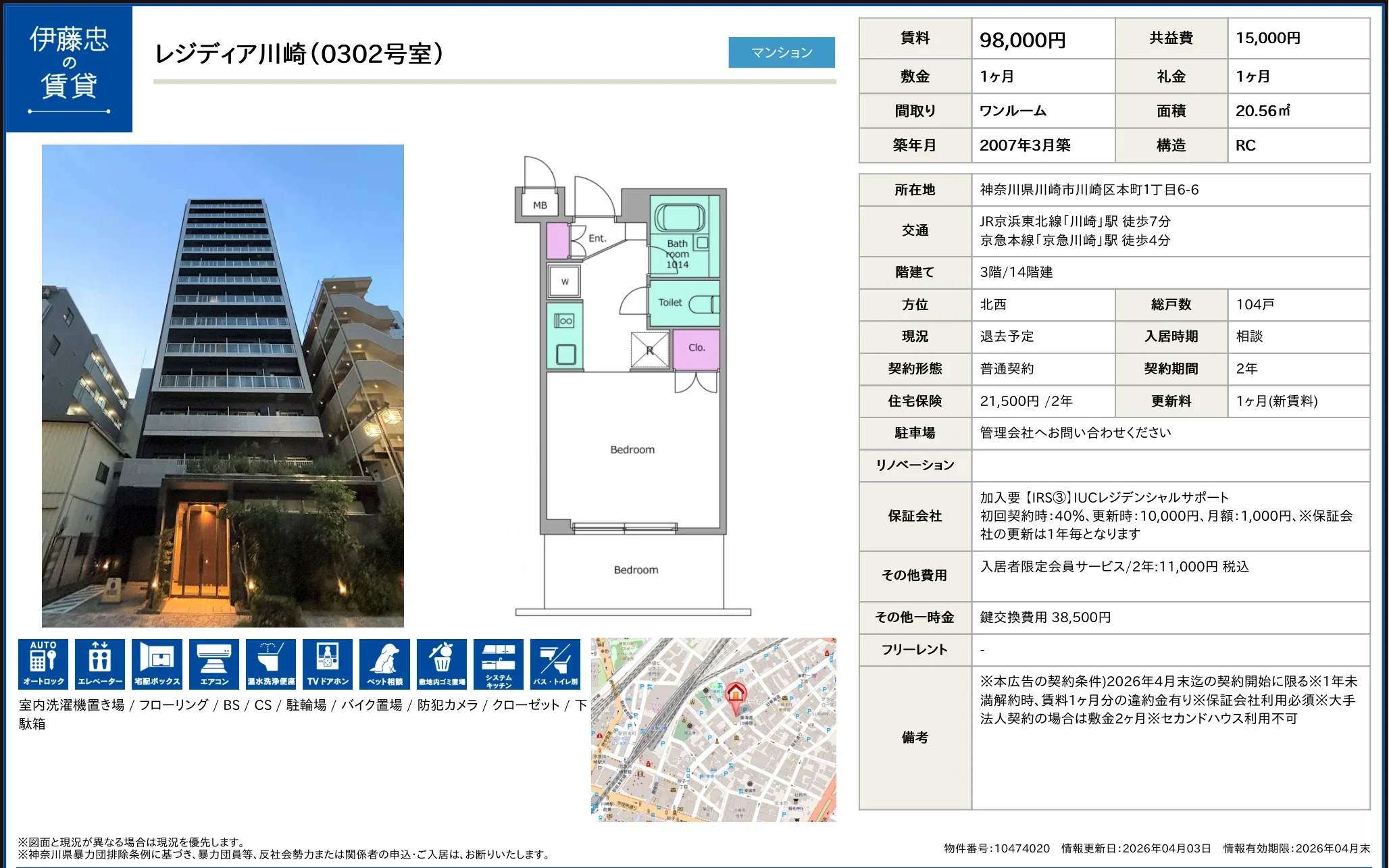 | 部屋番号 | 0302号 |