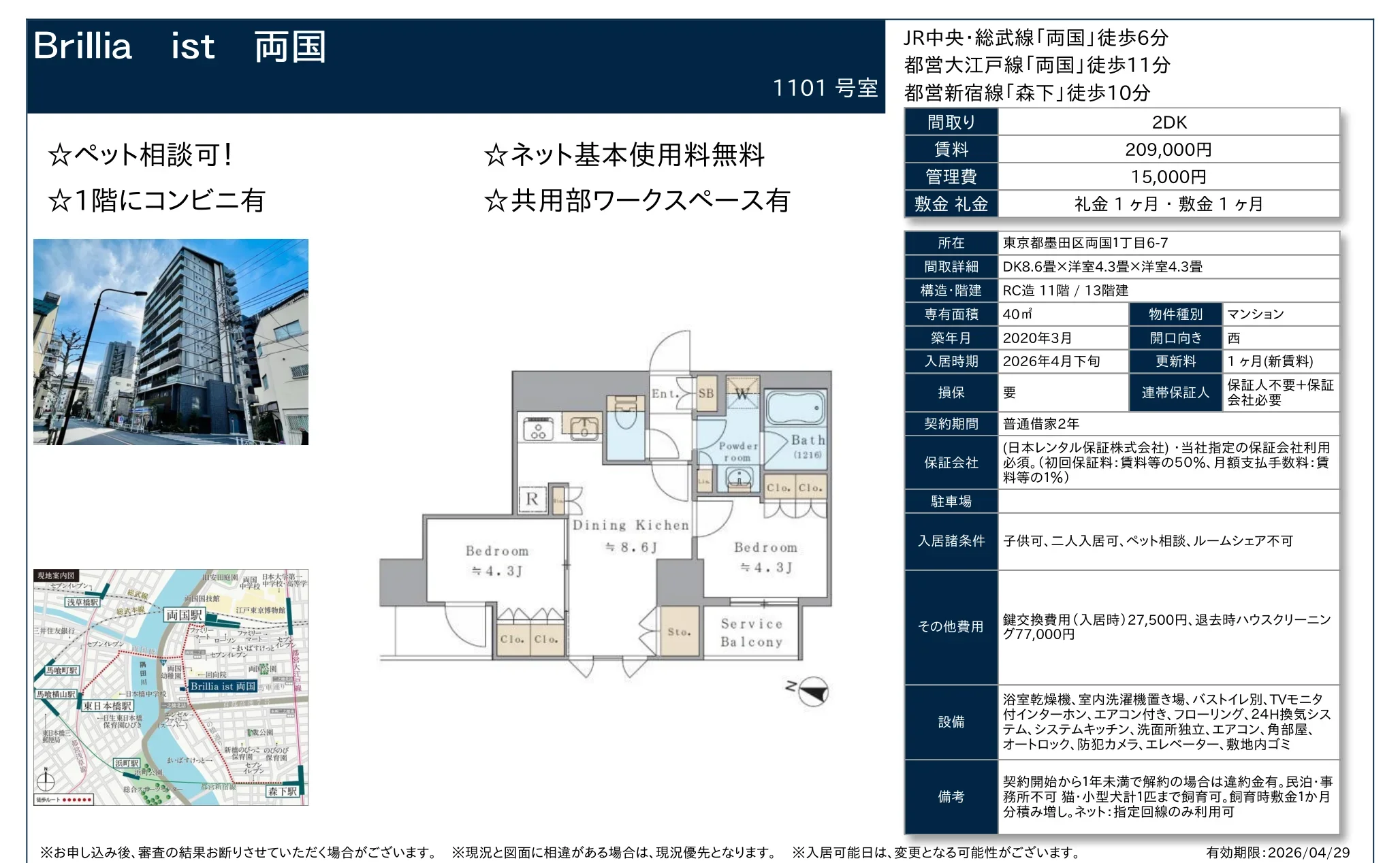 | アクセス | 両国 (徒歩6分) 両国 (徒歩11分) 森下 (徒歩10分) |