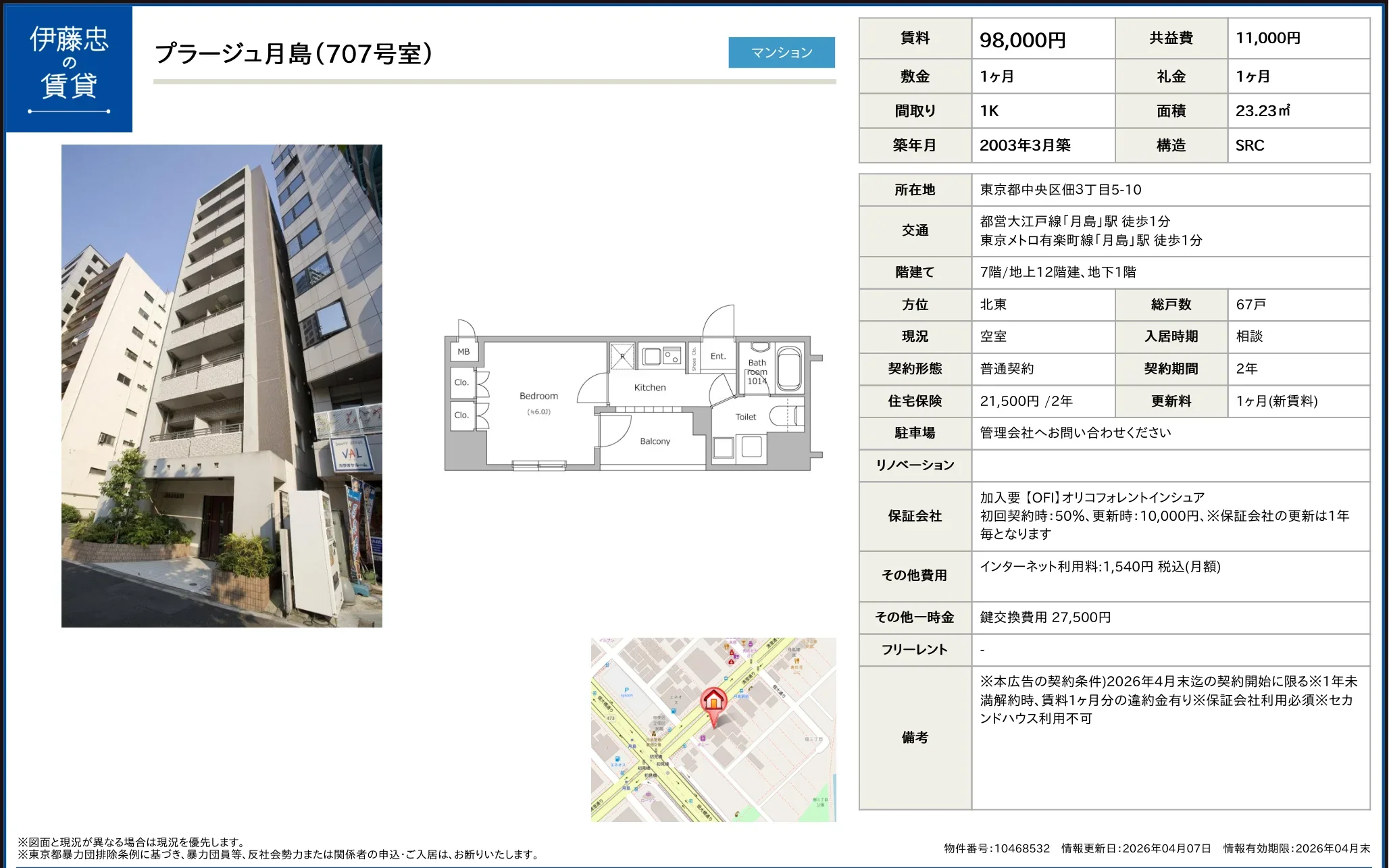 | アクセス | 月島 (徒歩1分) 月島 (徒歩1分) |