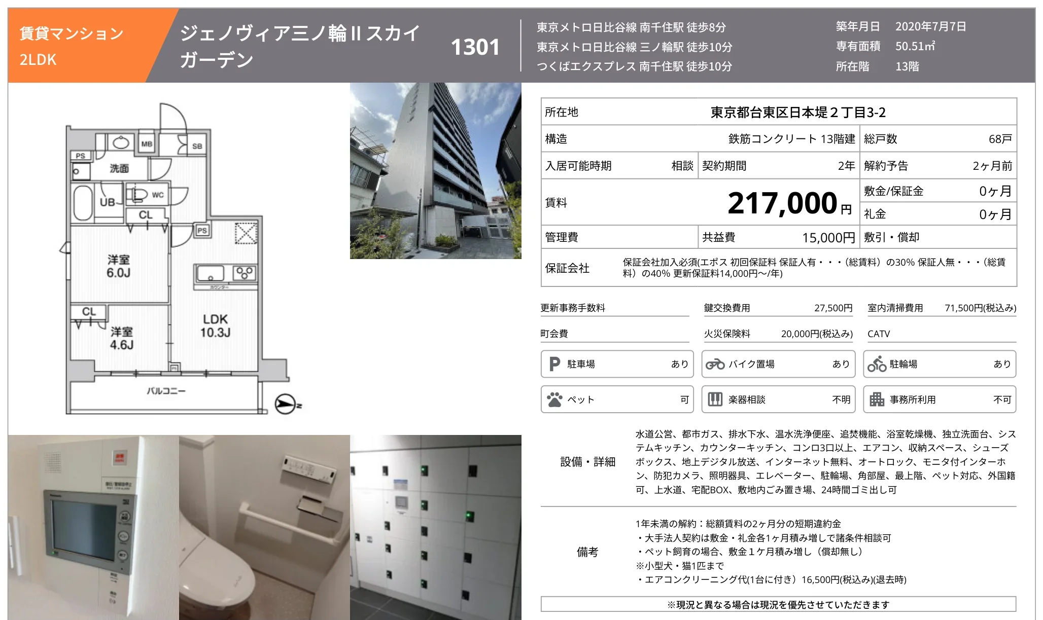 | 物件名 | ジェノヴィア三ノ輪 II スカイ 1301 |
