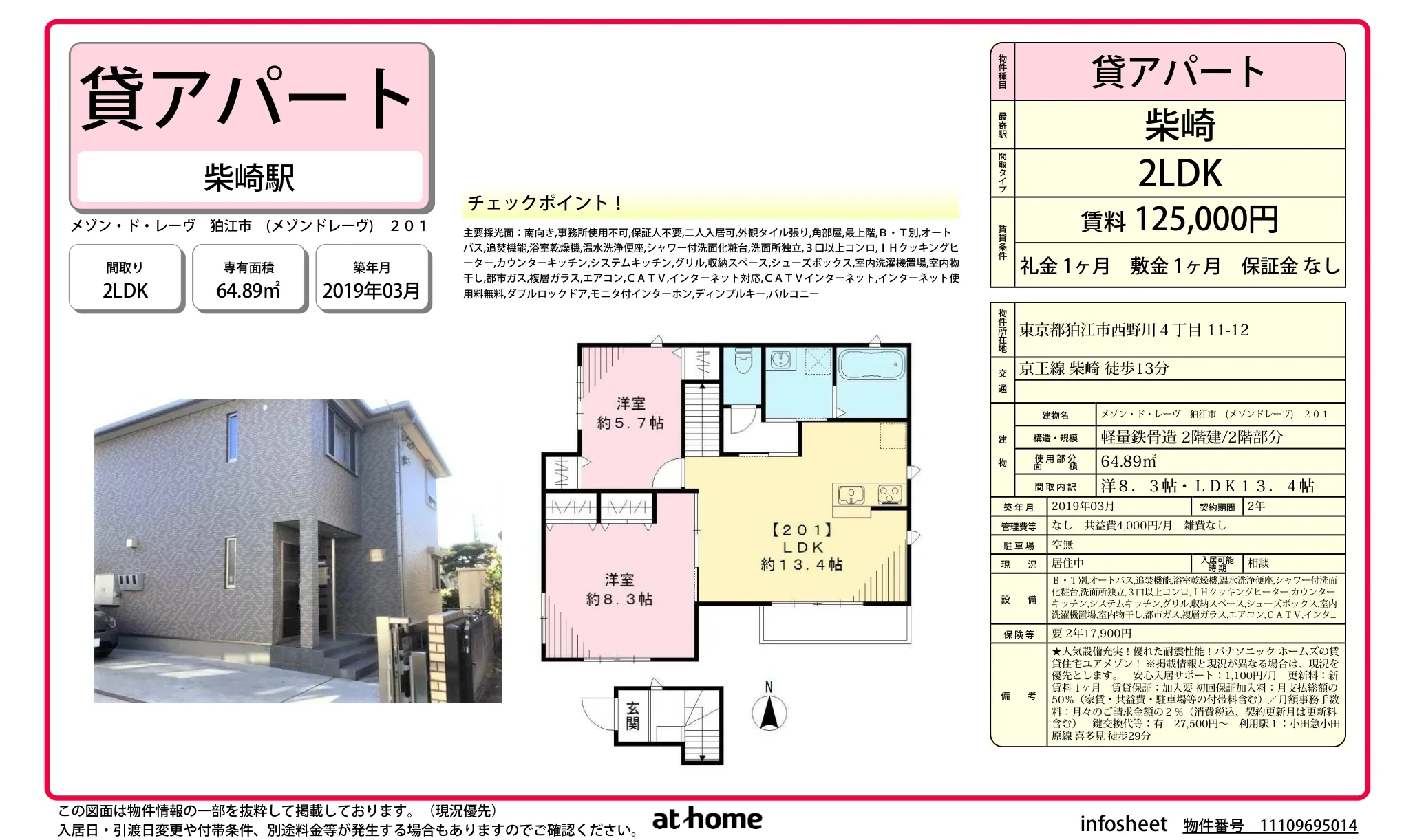 | アクセス | 柴崎 (徒歩13分) 喜多見 (徒歩29分) |