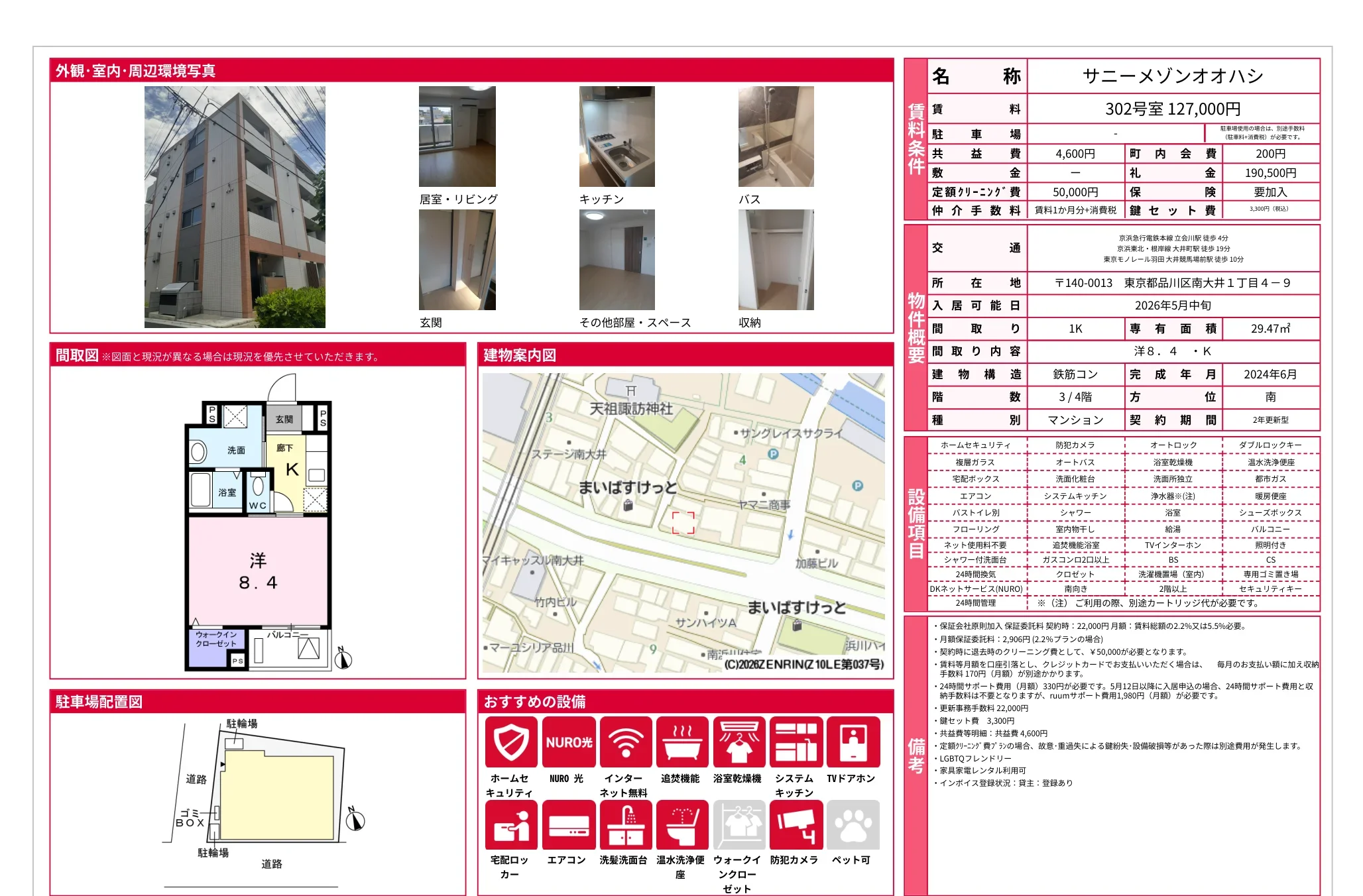 | 物件名 | サニーメゾンオオハシ 302号室 |