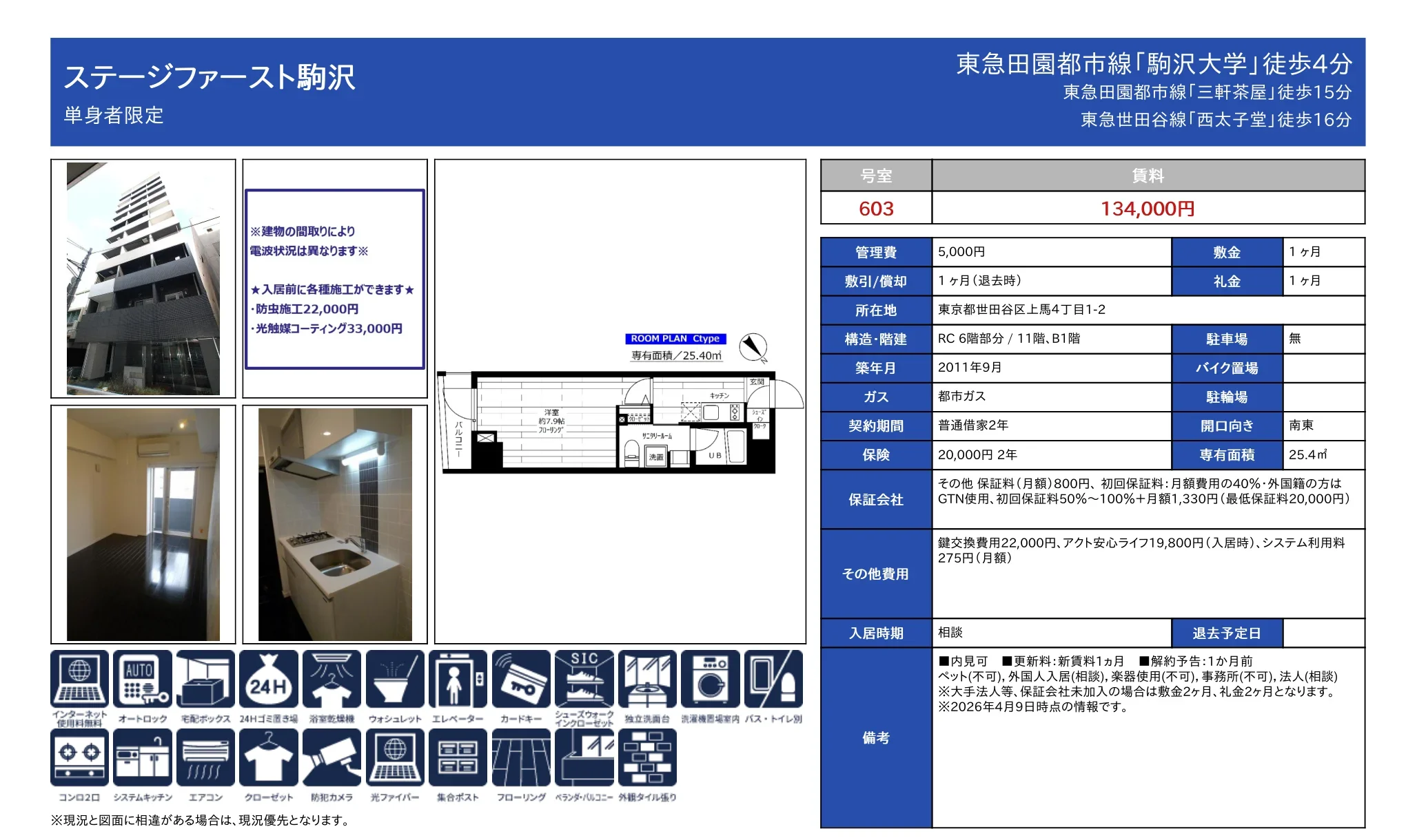 | アクセス | 駒沢大学 (徒歩4分) 三軒茶屋 (徒歩15分) 西太子堂 (徒歩16分) |