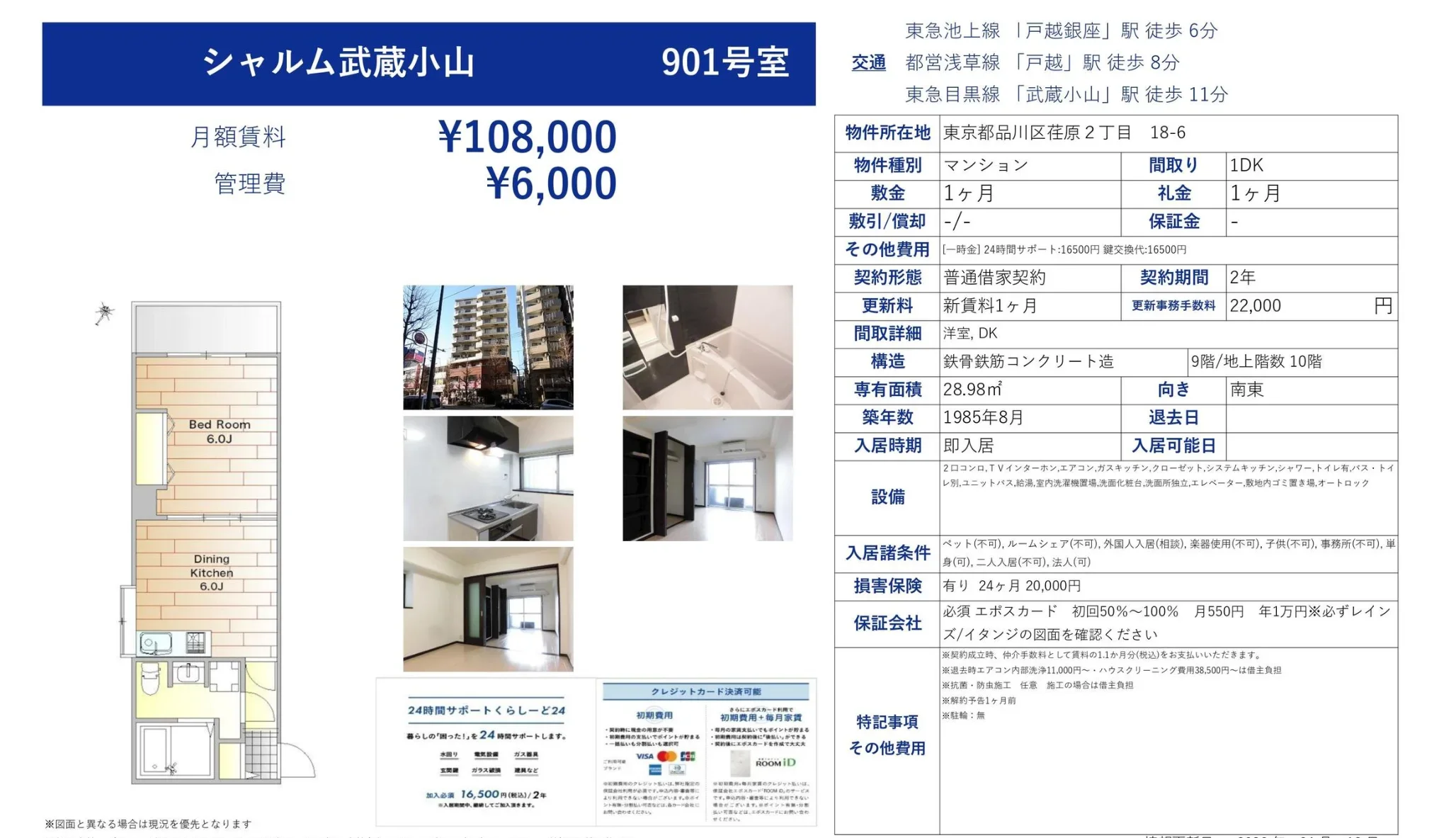 | 物件名 | シャルム武蔵小山 901号 |