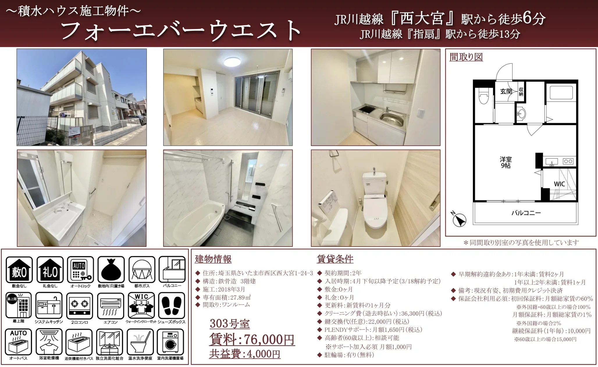 | 物件名 | フォーエバーウエスト 303号 |
