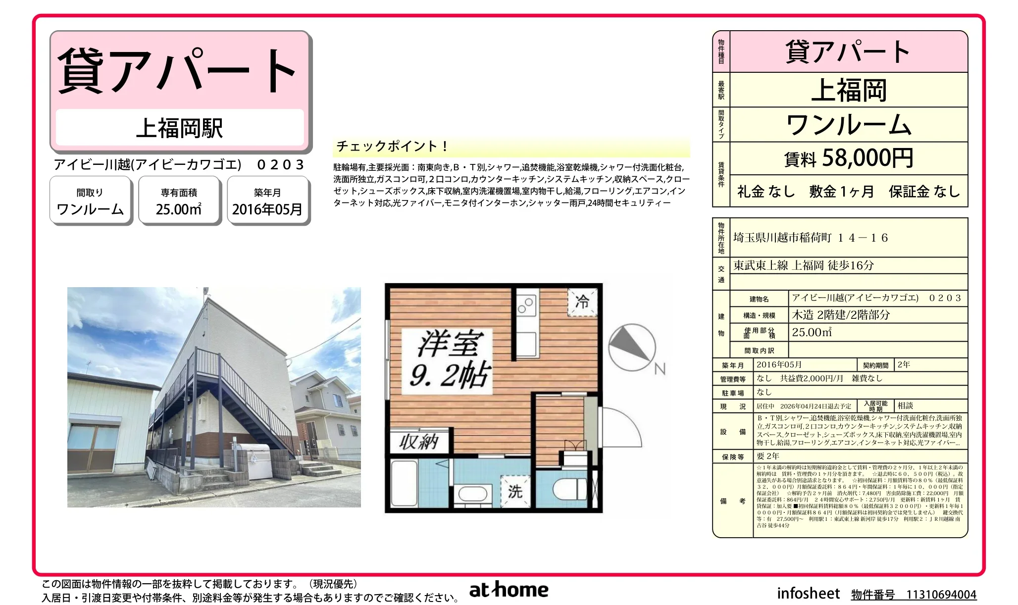 | アクセス | 上福岡 (徒歩16分) 新河岸 (徒歩17分) 南古谷 (徒歩44分) |