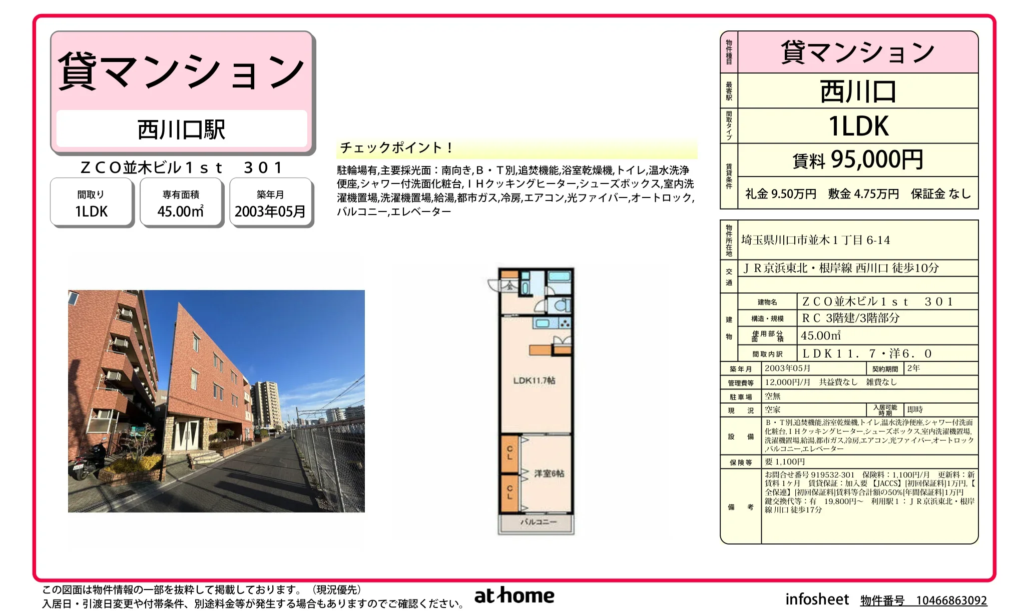 | アクセス | 西川口 (徒歩10分) 川口 (徒歩17分) |