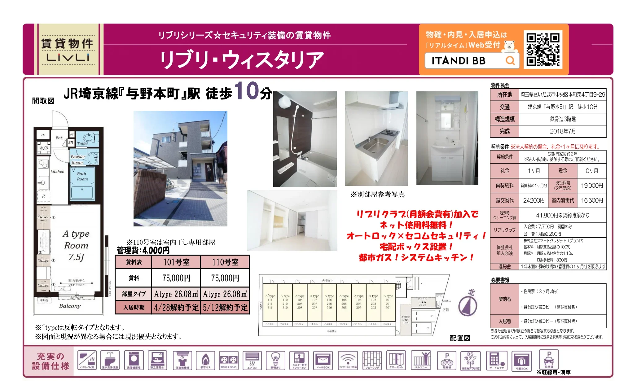 | 物件名 | リブリ・ウィスタリア 110号 |