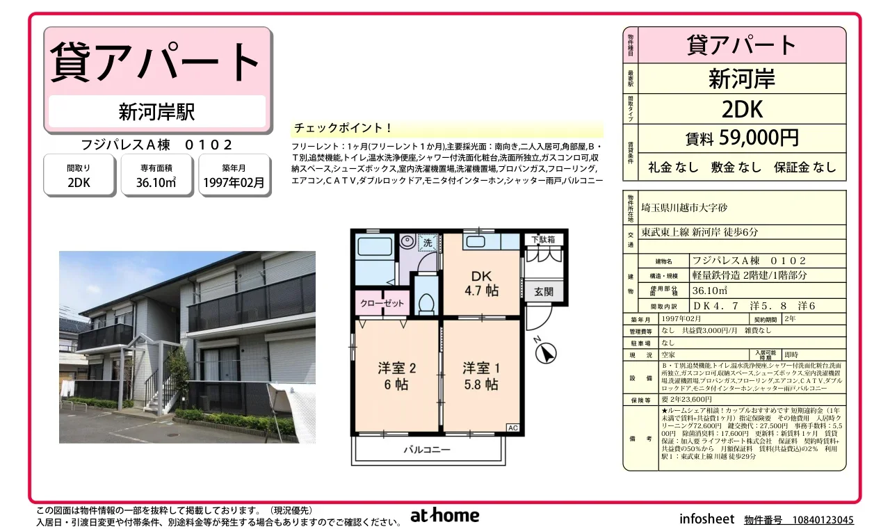 | 賃料 | 5.9万円 |