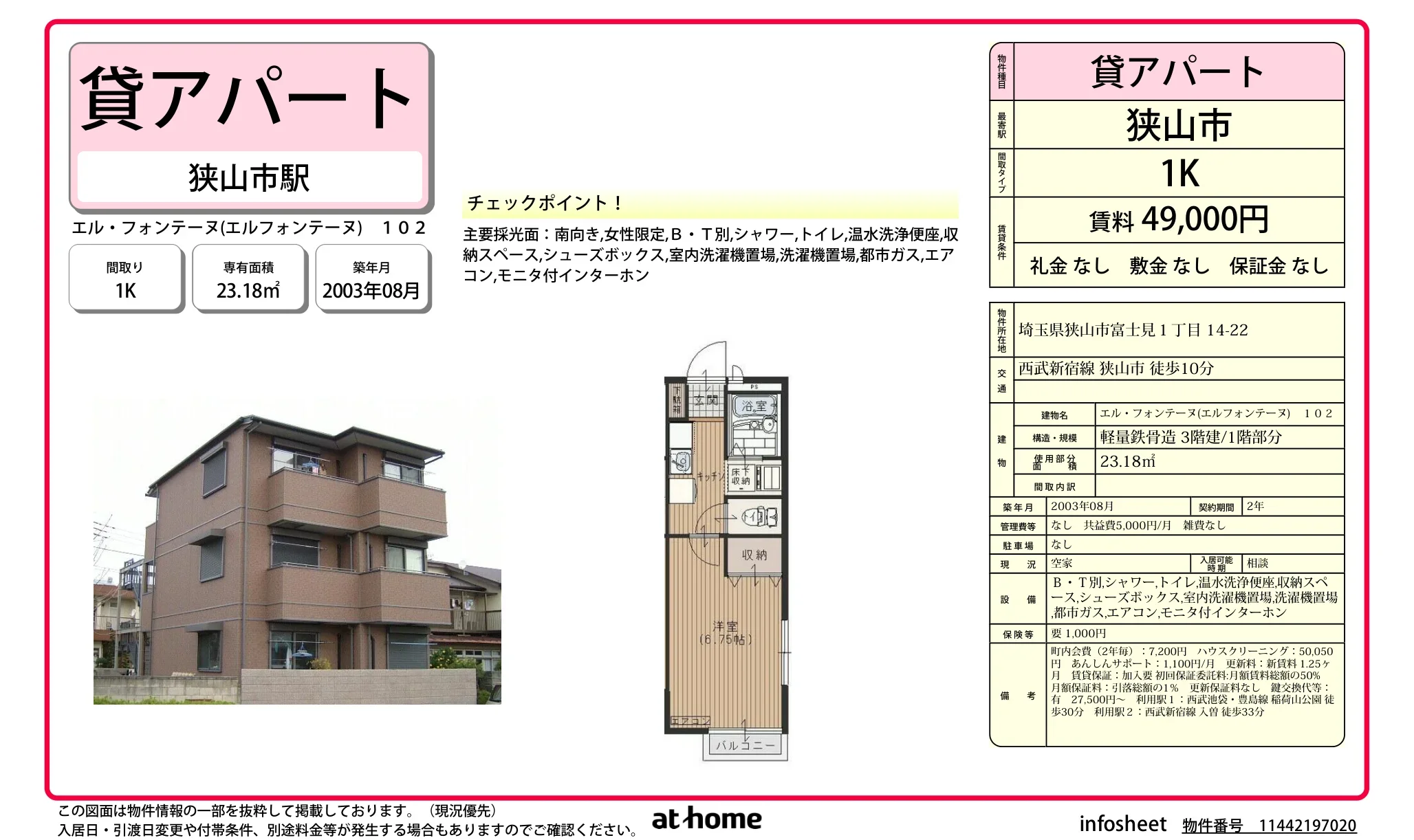 | アクセス | 狭山市 (徒歩10分) 稲荷山公園 (徒歩30分) 入曽 (徒歩33分) |