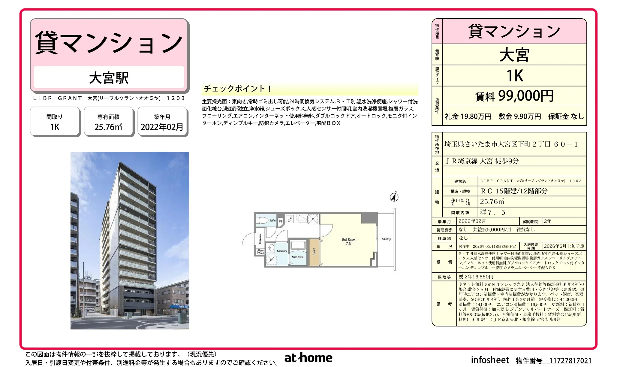 | 現況詳細 | 居住中 2026年05月18日退去予定 |