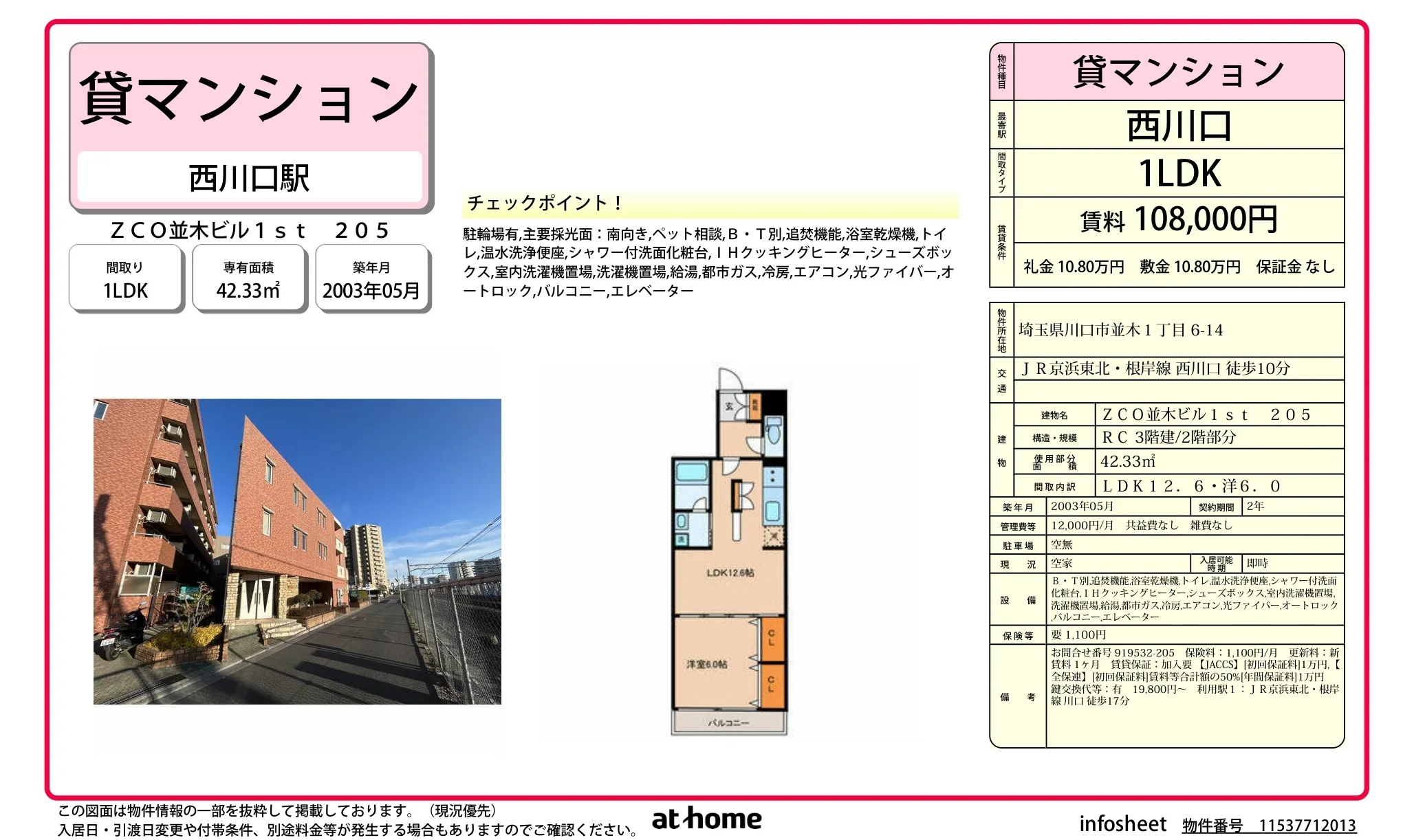 | アクセス | 西川口 (徒歩10分) 川口 (徒歩17分) |
