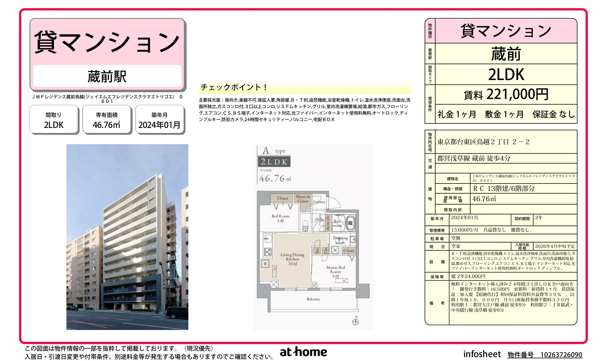 | 建物名 | JMFレジデンス蔵前鳥越 |
