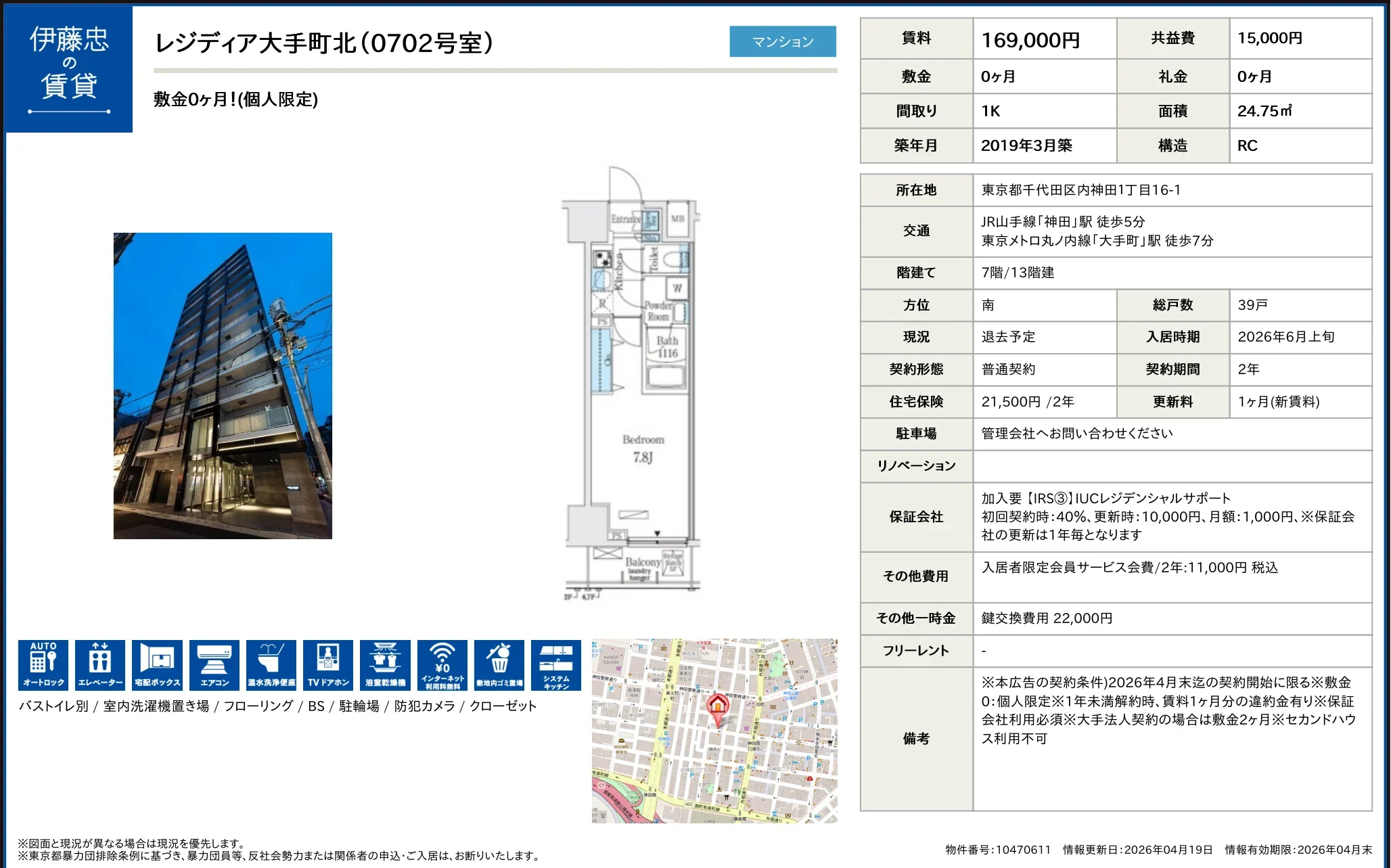 | アクセス | 神田 (徒歩5分) 大手町 (徒歩7分) 神田 (徒歩7分) |