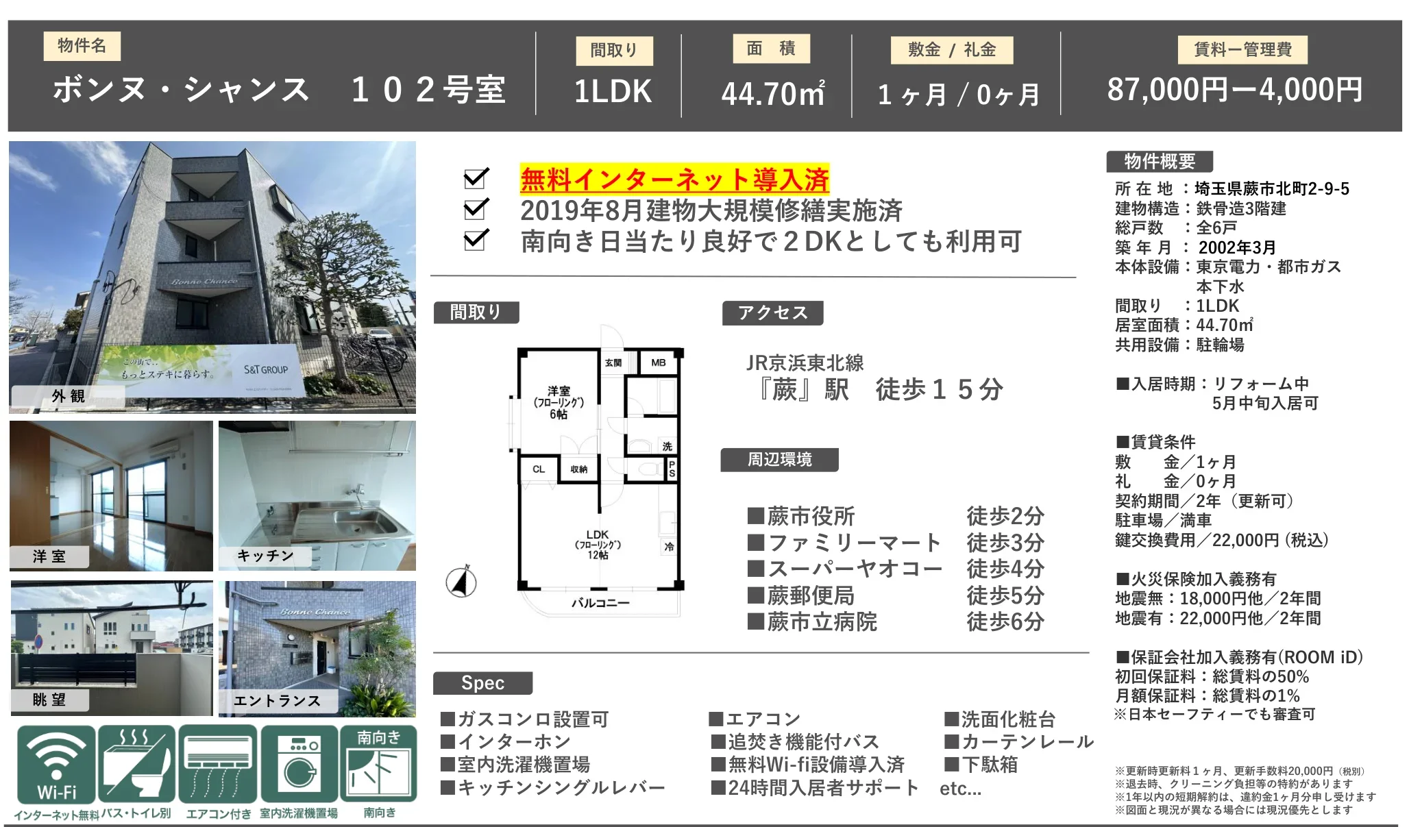 物件名ボンヌ シャンス 102号